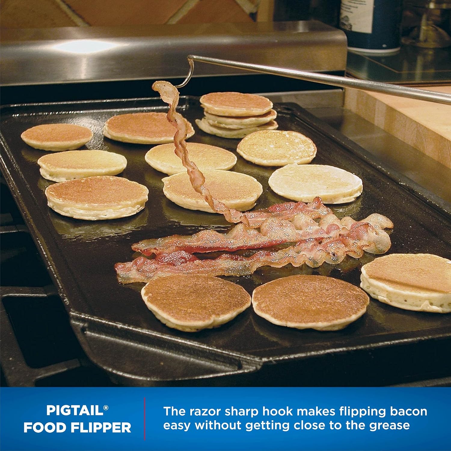 - PigTail for Grilling: Pick pickles from the jar, hot corn on the cob from boiling water or easily flip bacon in the fry pan and much more. Eliminate the need for tongs, forks and spatulasโฆ flip steaks, chops, breasts and vegetables on the grill