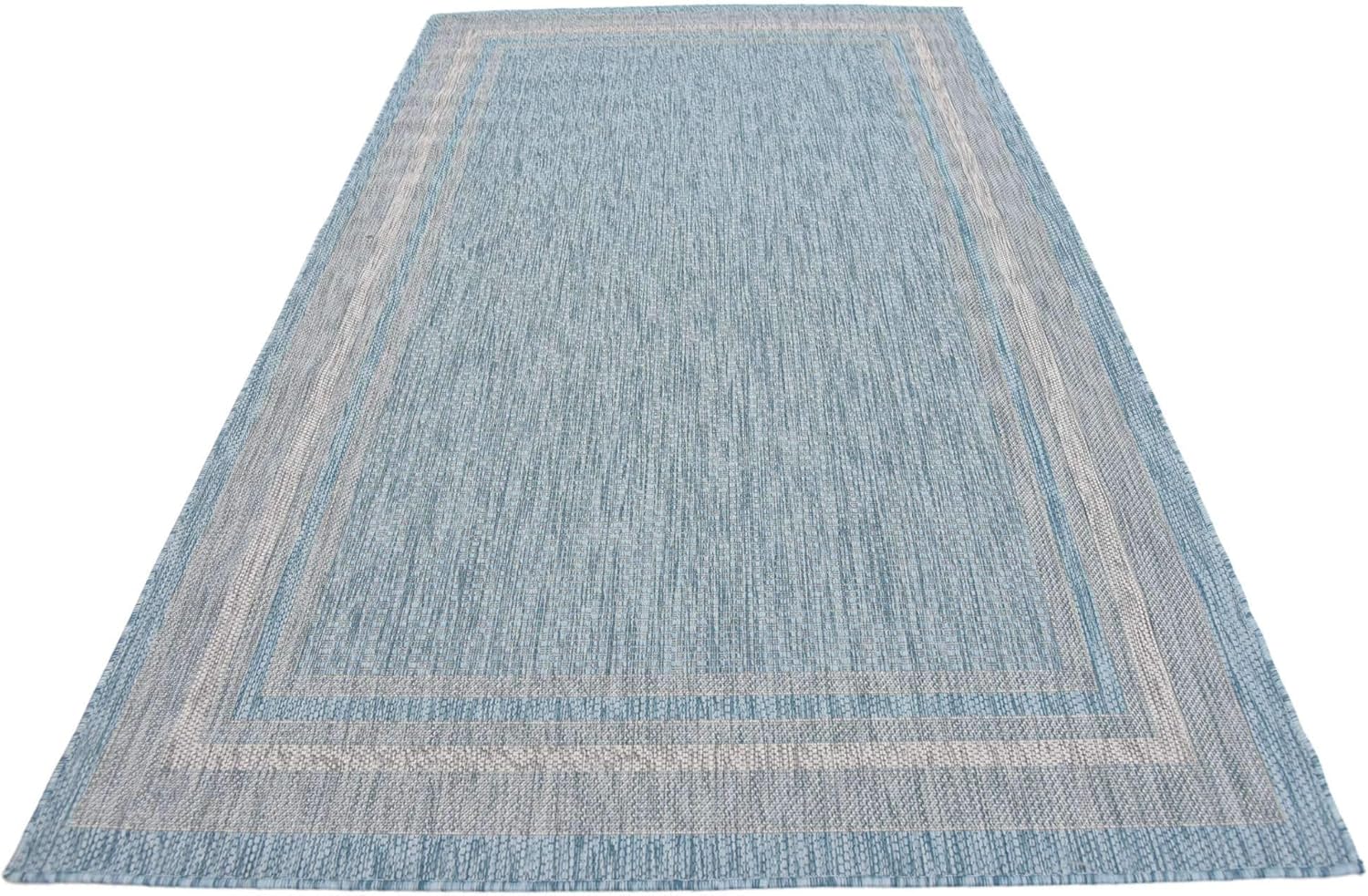 Unique Loom Outdoor Border Collection Area Rug - Soft Border (5' 1" x 8' Rectangle, Aquamarine/ Ivory)