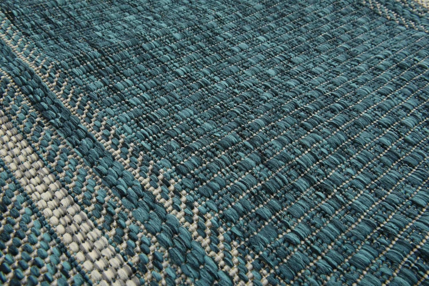 Unique Loom Outdoor Border Collection Area Rug - Soft Border (2'x 6' 1" Runner, Teal/ Ivory)