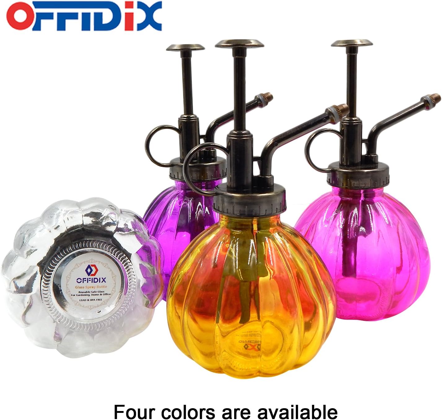 OFFIDIX Glass Watering Spray Bottle, 6.3" Tall Vintage Style Plant Mister with Bronze Plastic Top Pump One Hand Watering Can Glass Spary Bottle (Dark Purple)
