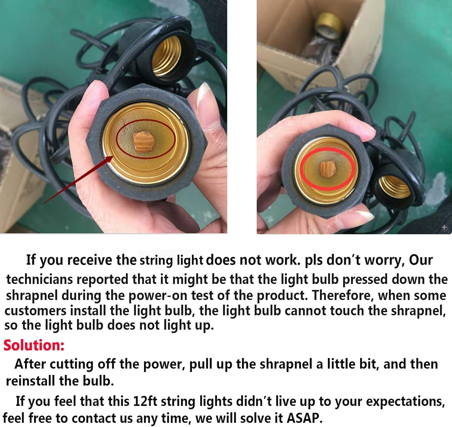 - Special Feature : 12 feet Outdoor String Lights, Commercial Grade Patio Lights, DIY Hanging Lights Fixture, waterproof light strings, with 11W S14 incandescent Bulbs 12 feet Outdoor String Lights, Commercial Grade Patio Lights, DIY Hanging Lights Fixture, waterproof light strings, with 11W S14 incandescent Bulbs