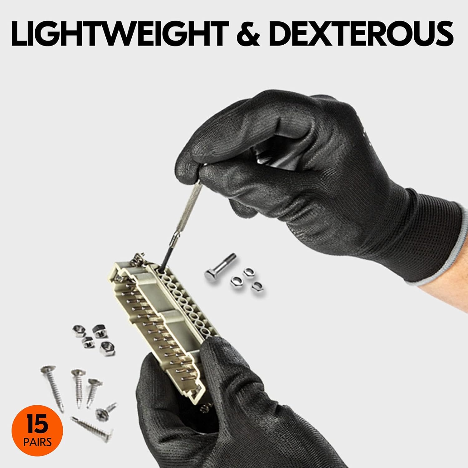 Vgo... 15-Pairs Safety Work Gloves, Gardening Gloves, Polyurethane Coated, Dipping Gloves, Latex Free (Size M, Black, PU2103)