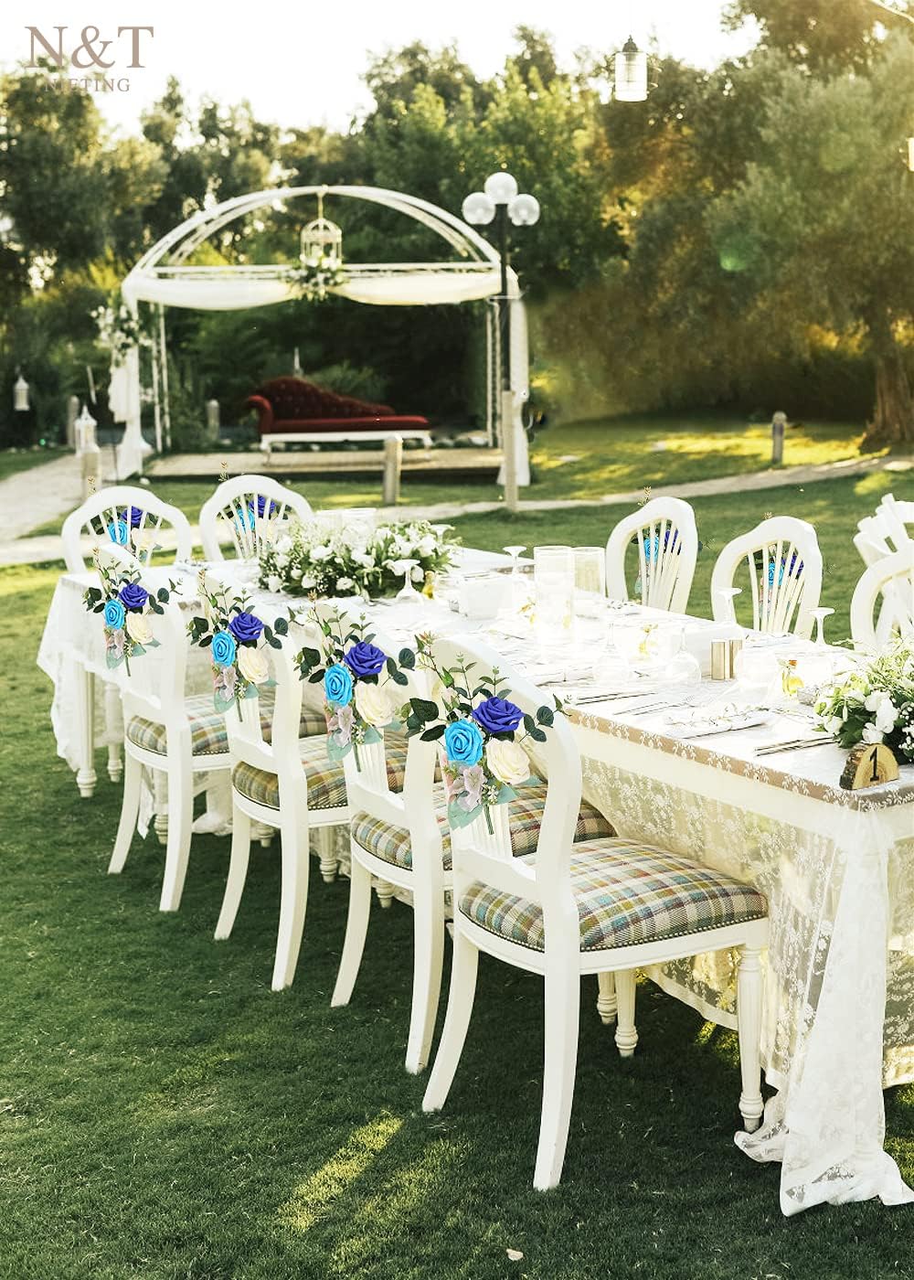 N&T NIETING Blue Roses Artificial Flowers, 25pcs Fake Flowers Rose Perfect for DIY Wedding Bridesmaid Bridal Bouquets Centerpieces Home Flower Arrangement Decoration, Series Blue