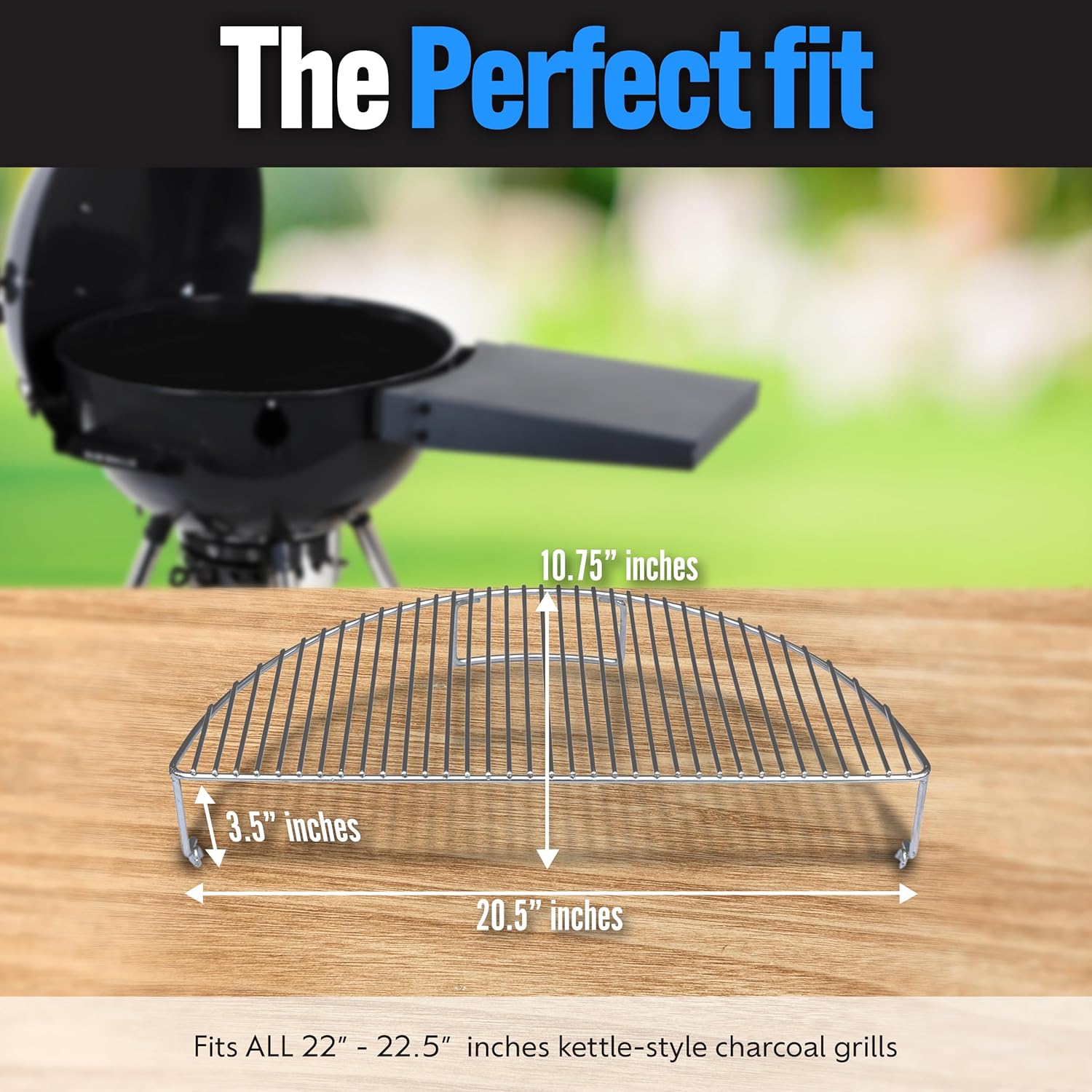- Secure and Easy Fit: No worries about wobbly racks here. Our Elevated Cooking Grate fits securely behind the grate handle and rests on the crossbars with pronged feet, giving you a stable cooking surface every time. Designed to fit most standard grill grates 22” or larger as well as rectangle grills, compatible with most Weber grills.