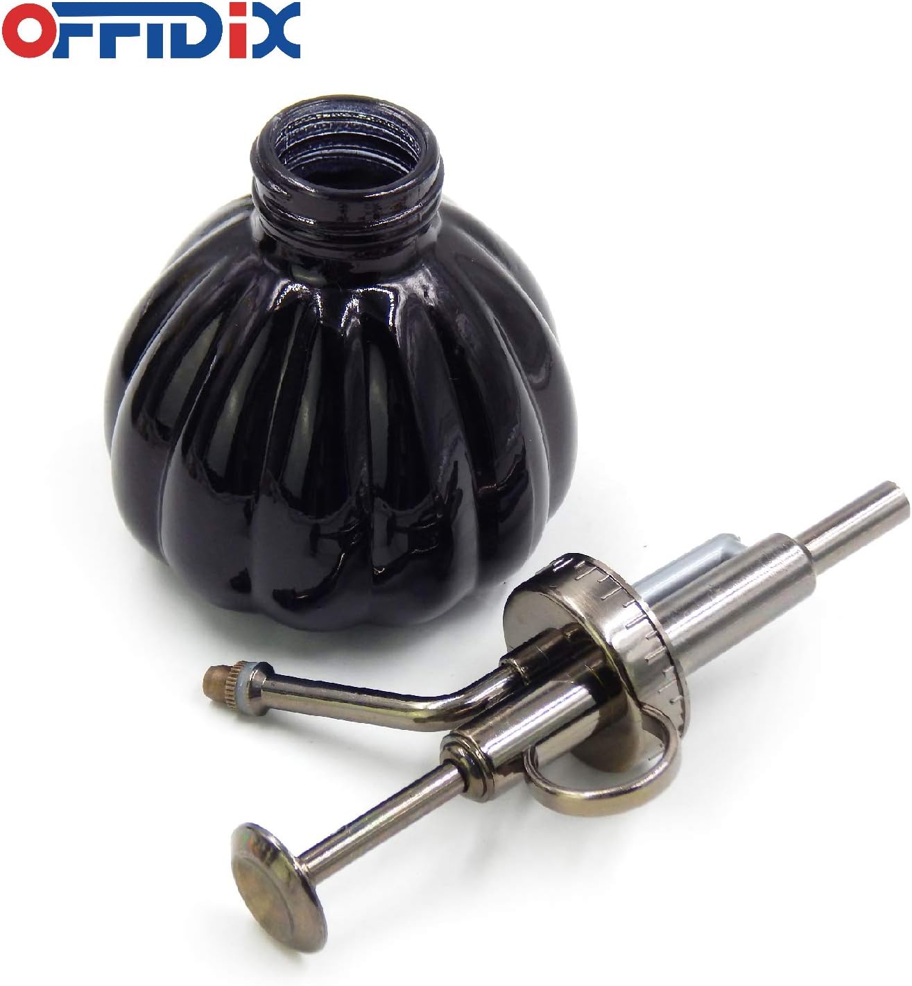 OFFIDIX Plant Mister Flower Watering Can, 6.3" Tall Vintage Pumpkin Style Black Color Glass Spray Bottle & Bronze Plastic Top Pump Ideal for Watering Small Plants Inside Home or Office