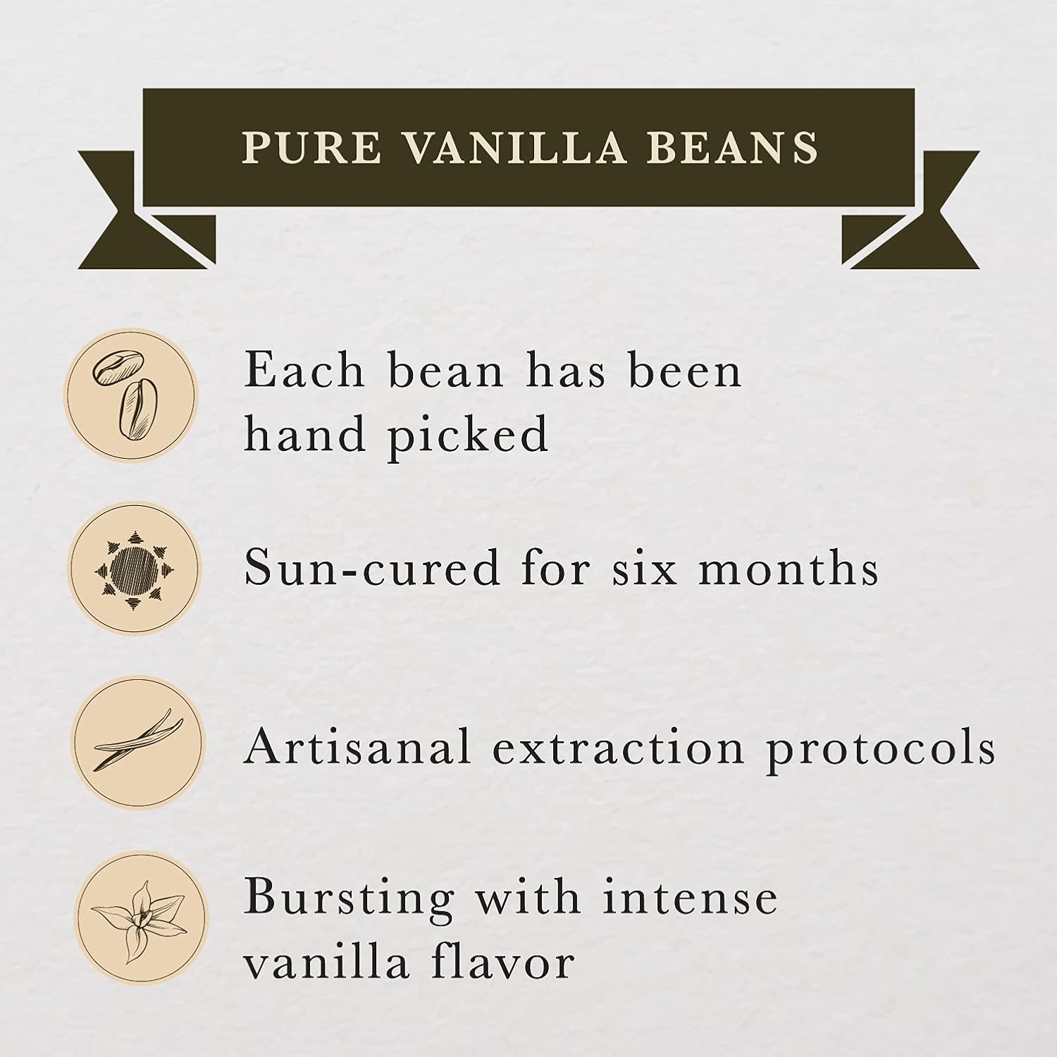 - Each vanilla bean is 5-7" long, packed with gorgeous black seeds and plump with its correct moisture content, unlike the dried-out beans you often see in supermarkets.