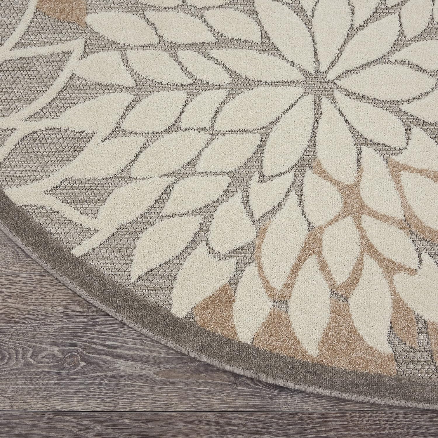 Nourison Aloha Indoor/Outdoor Area Rug 4', Natural, Round Tropical Botanical Easy -Cleaning Non Shedding Bed Room Living Room Dining Room Deck Backyard Patio