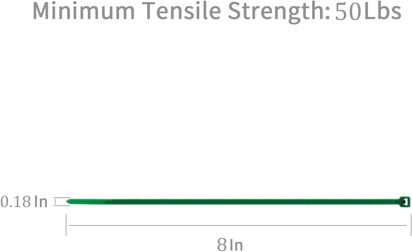 XINGO 100PCS Heavy Duty Cable Zip Ties, 8 inch Green Nylon, 50 Pounds Tensile Strength, Self-Locking