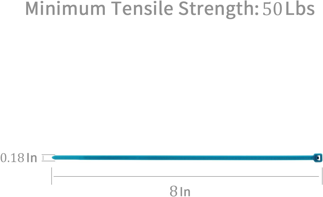 XINGO 100PCS Cable Zip Ties Heavy Duty, Premium Nylon Plastic Wire Ties with 50 Pounds Tensile Strength, Self-Locking Black Nylon Zip Ties for Indoor and Outdoor (8 inch, Blue)
