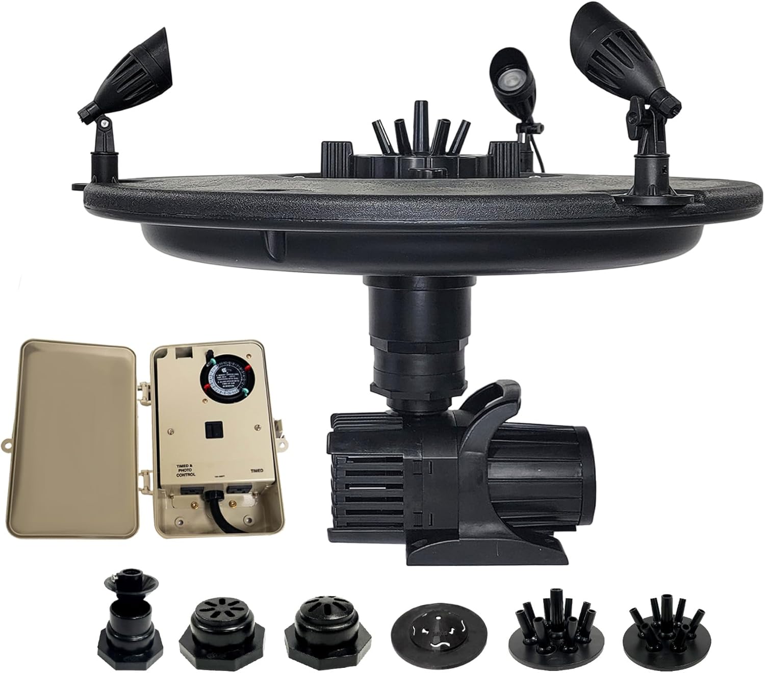 - Customizable Spray Patterns – Includes a quick-release nozzle flange and 9 interchangeable fountain spray patterns to enhance your landscape and match your pond’s style.
