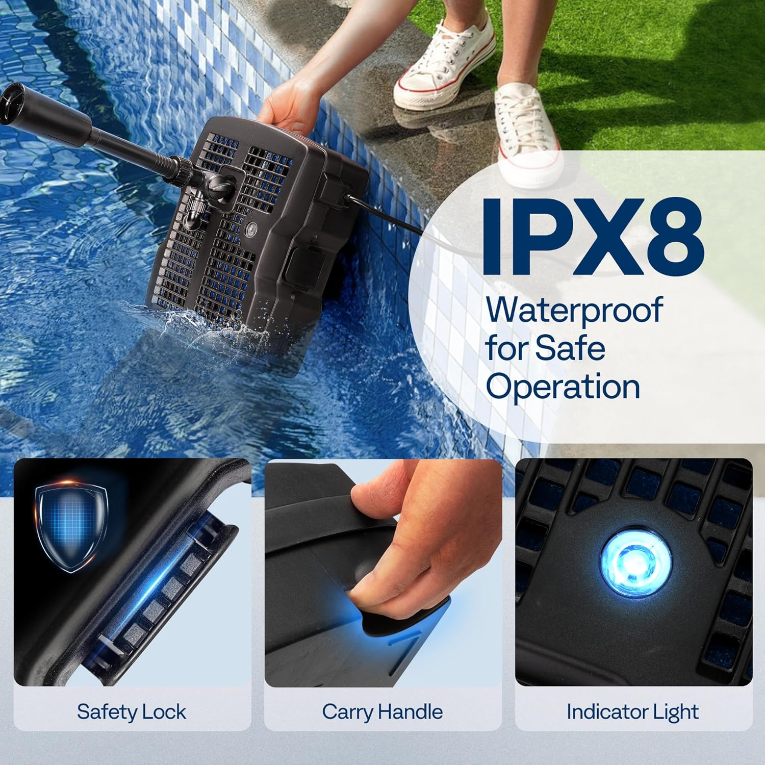- IPX8 WATERPROOF PERFORMANCE - All the live parts of high-premium materials up to IPX8 standards are sealed into the chamber with good waterproof and high insulation, which guarantees the endurance of this fountain filter; the 33ft long power cord is UL certified for safe and stable use