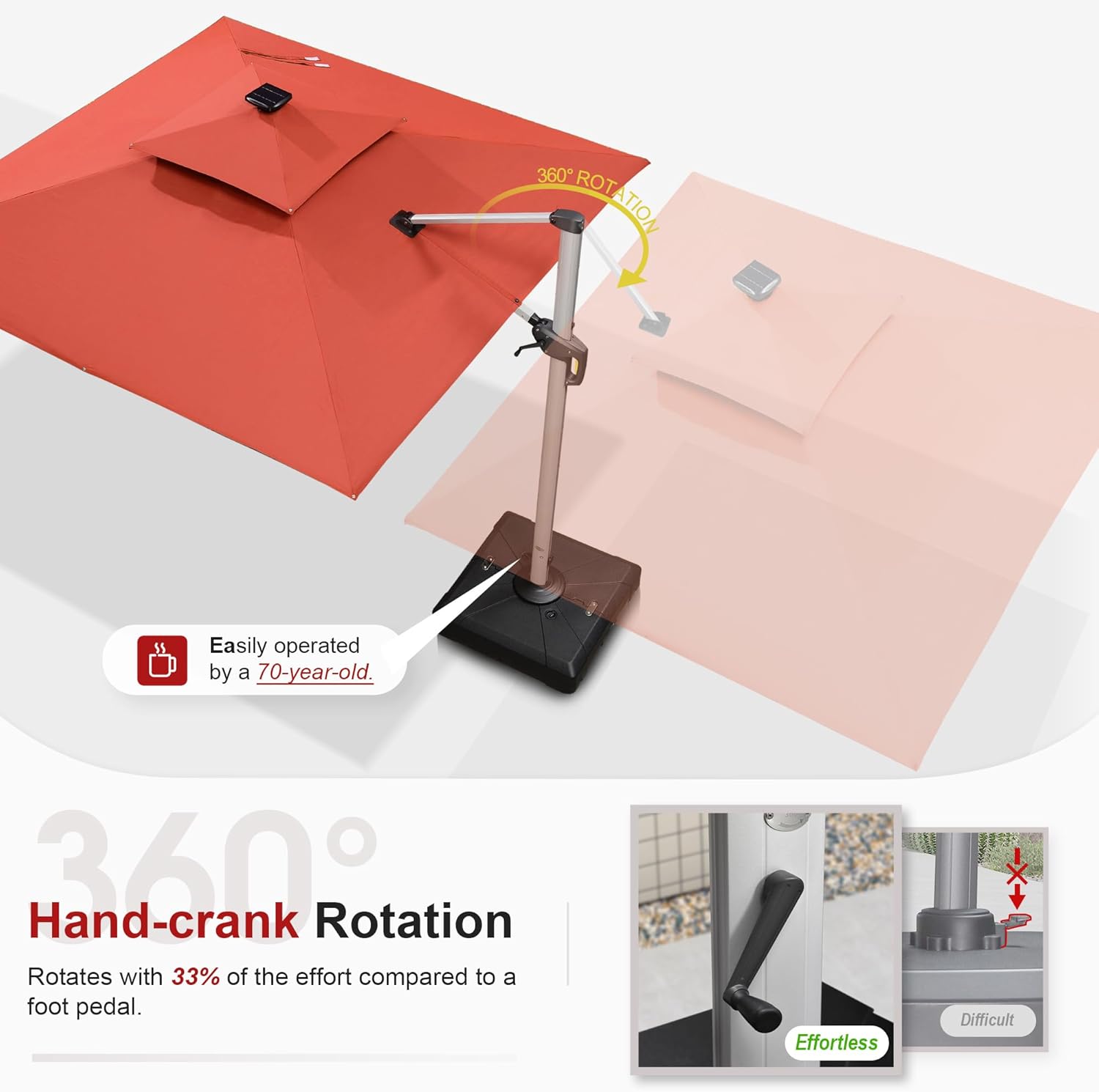 PURPLE LEAF 9' X 12' Solar Powered LED Rectangle Patio Umbrella Offset Cantilever Umbrellas Outdoor Market Umbrella Double Top Deluxe Garden Umbrellas, Terra