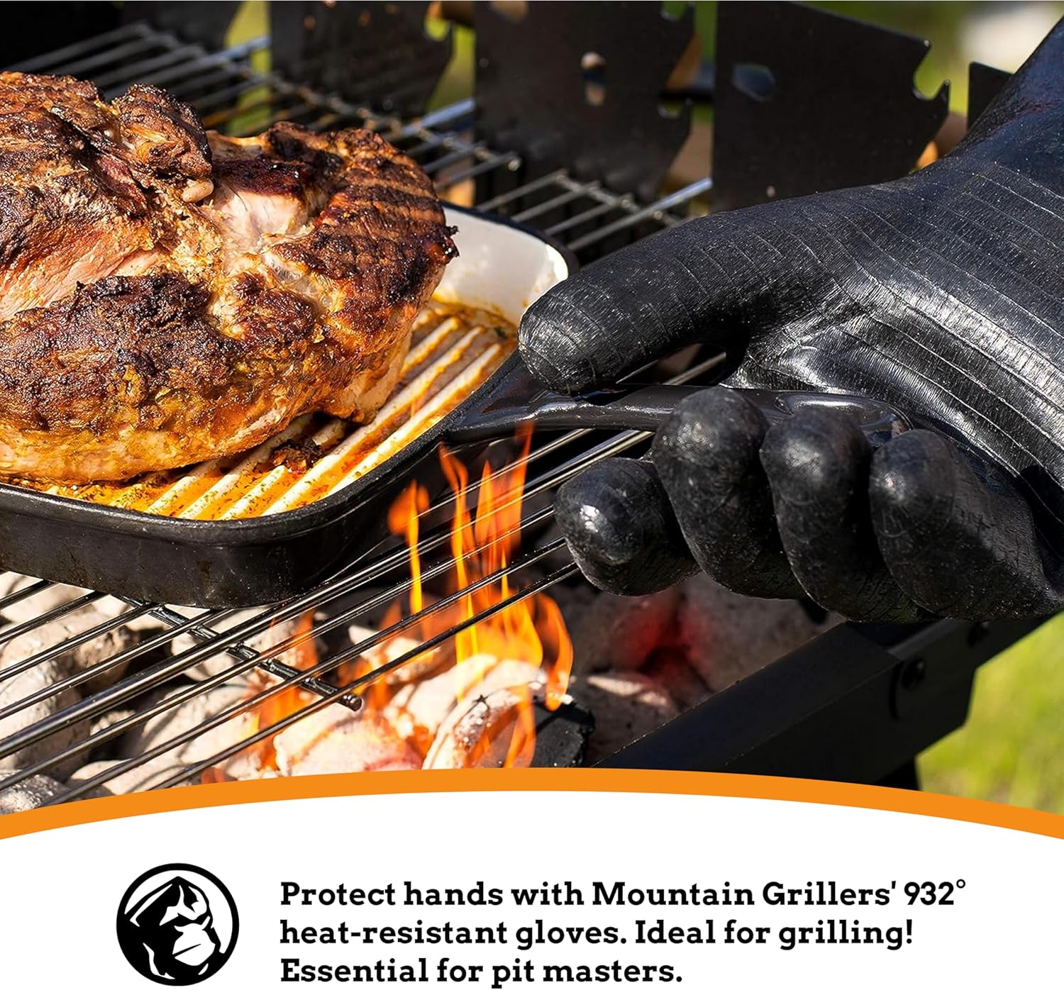 - The question is not whether we will barbecue, but how will we barbecue: a good pair of bbq gloves are an essential part of any pit master's arsenal. From arranging grill grates or coals to moving food around on the gas or charcoal grill, you want to protect yourself. Mountain grillers high-temperature cooking gloves have the best level of heat resistance, rated at 932 degrees