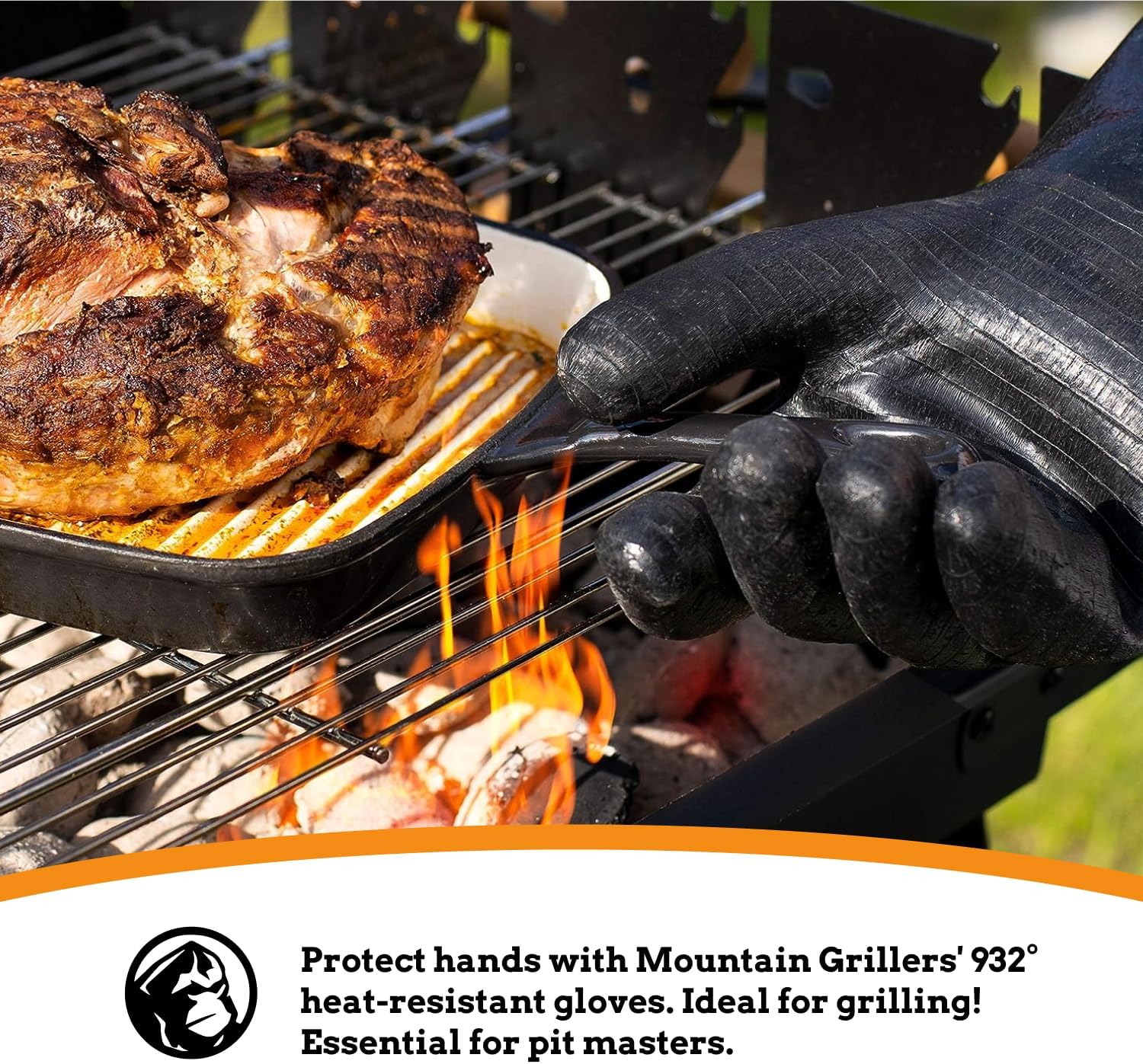 - The question is not whether we will barbecue, but how will we barbecue: a good pair of bbq gloves are an essential part of any pit master's arsenal. From arranging grill grates or coals to moving food around on the gas or charcoal grill, you want to protect yourself. Mountain grillers high-temperature cooking gloves have the best level of heat resistance, rated at 932 degrees