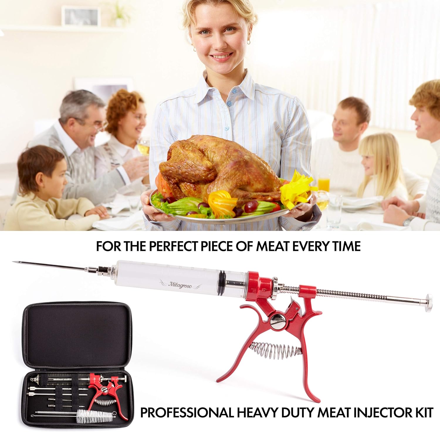 - š Lifetime Guarantee & ECO Friendly Package: 100% safe & healthy kitchen food injector syringe. Turkey injector and Silicone O-rings for spare replacement. Keep your family healthy with meat marinade injector.