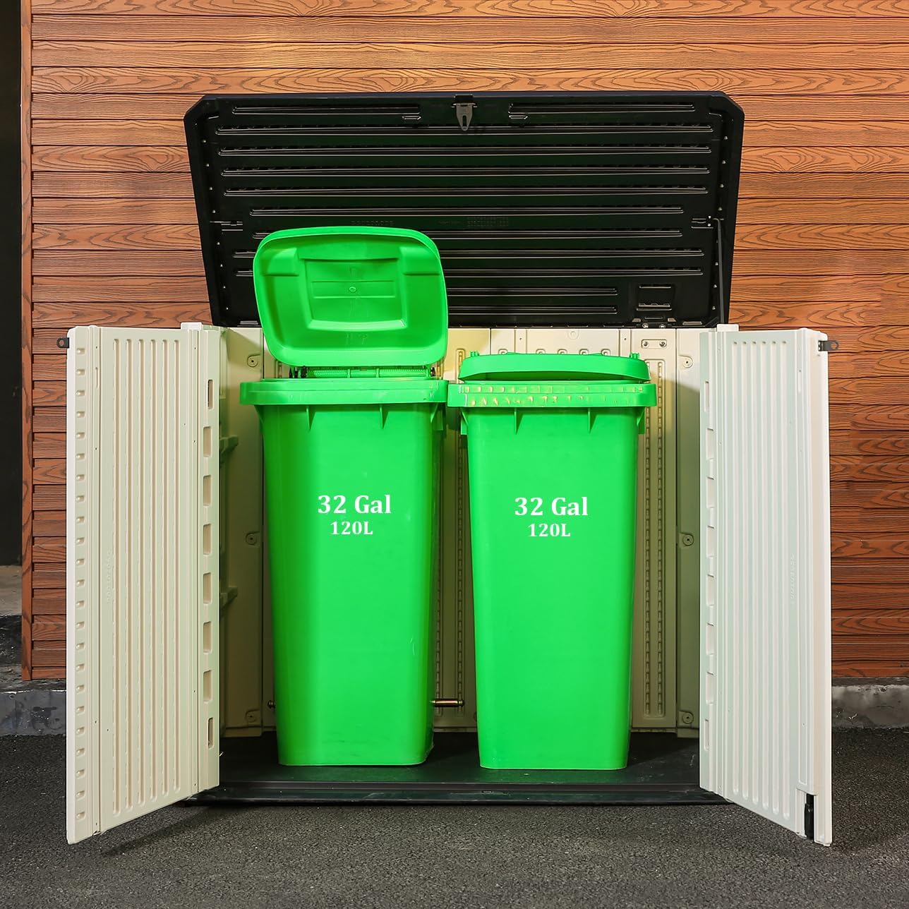 - 【Multi-purpose Storage】 Perfect for storing garden tools, BBQ grills, firewood, seat cushions, and two - small trash cans, patio & garden accessories and more.