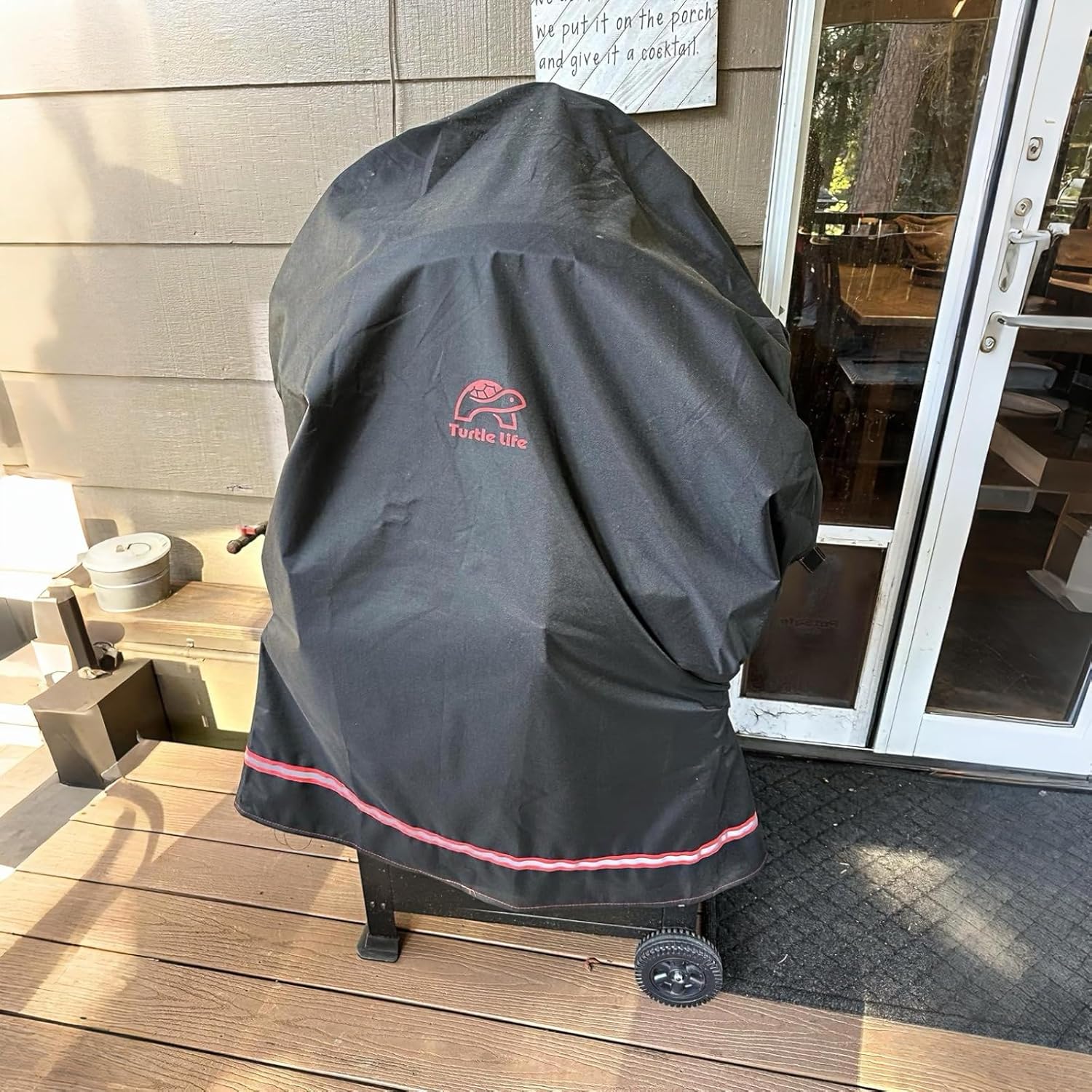 - 【Feature】- Durable handles and straps on both sides for fixing the cover. Handles provide convenience for fitting and removal. Straps help tighten and prevent the cover from being blown off. The air vent hole would ensure that your gas grill wouldn't become dirty and keep dry.