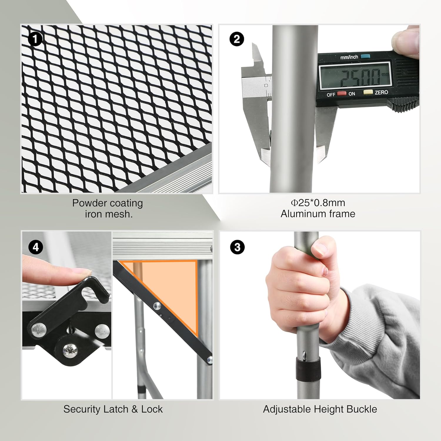 - Multifunction: Finished with premium aluminum alloy frame and thick iron mesh table top, these rectangular and square metal outdoor grill tables for camping are sturdy and stable enough. Water and heat resistant wire desktop can support your oven, grill stand, or other bbq equipment.