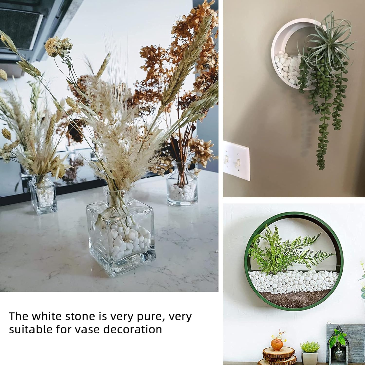 - 🌷【WIDE USES】Common applications include succulent containers, potted plants,vases,cactus,bonsai,landscapeand terrariums.It is perfect for home decor and a creative interior and exterior design. The possibilities are endless with these floral arranging white gravel rocks!