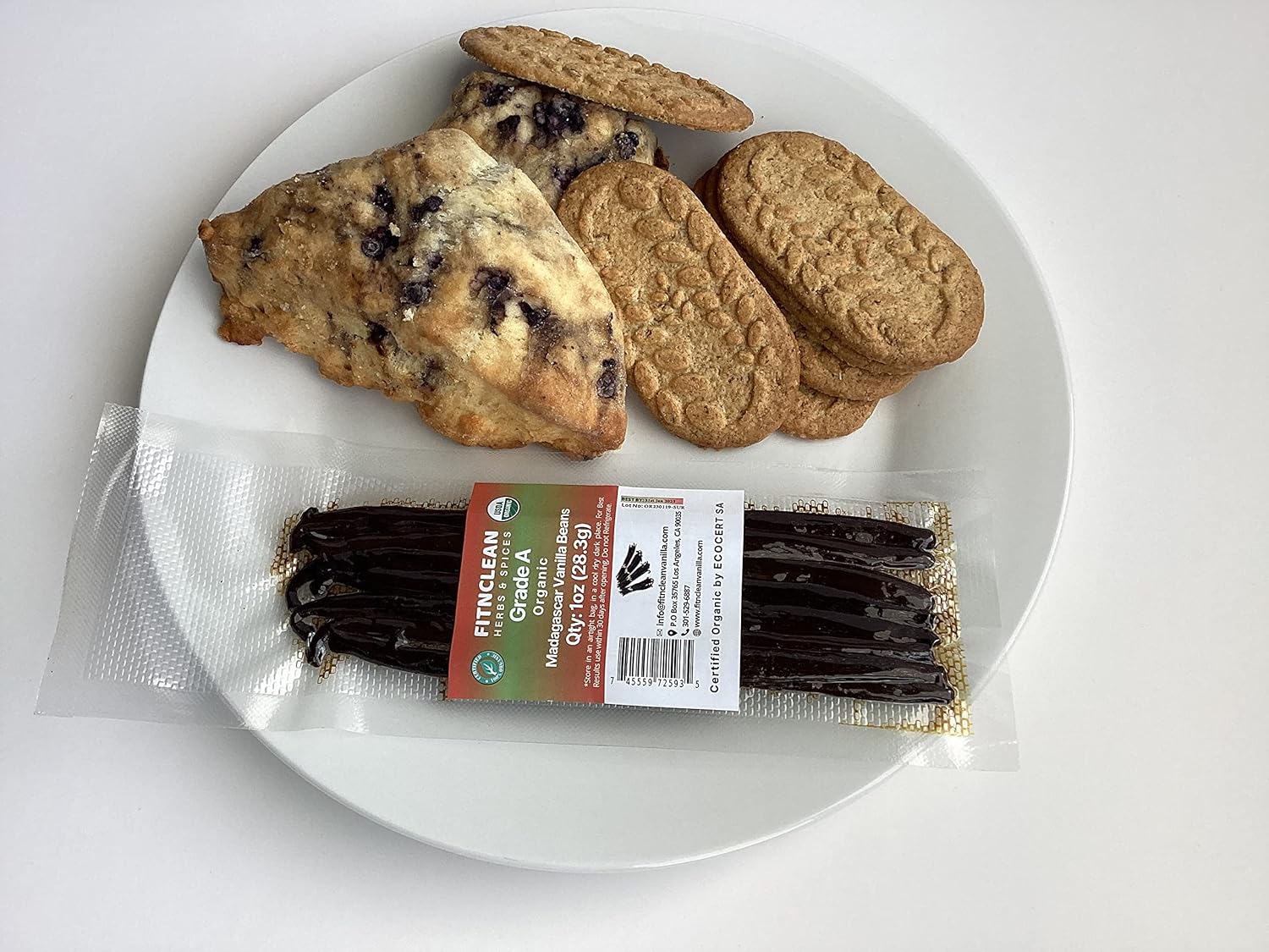 1oz. Madagascar Organic Vanilla Beans Gourmet Grade A. Certified USDA Organic 6"-7.5" by FITNCLEAN VANILLA for Cooking, Brewing, Extract Fresh Bourbon NON-GMO Whole Pods