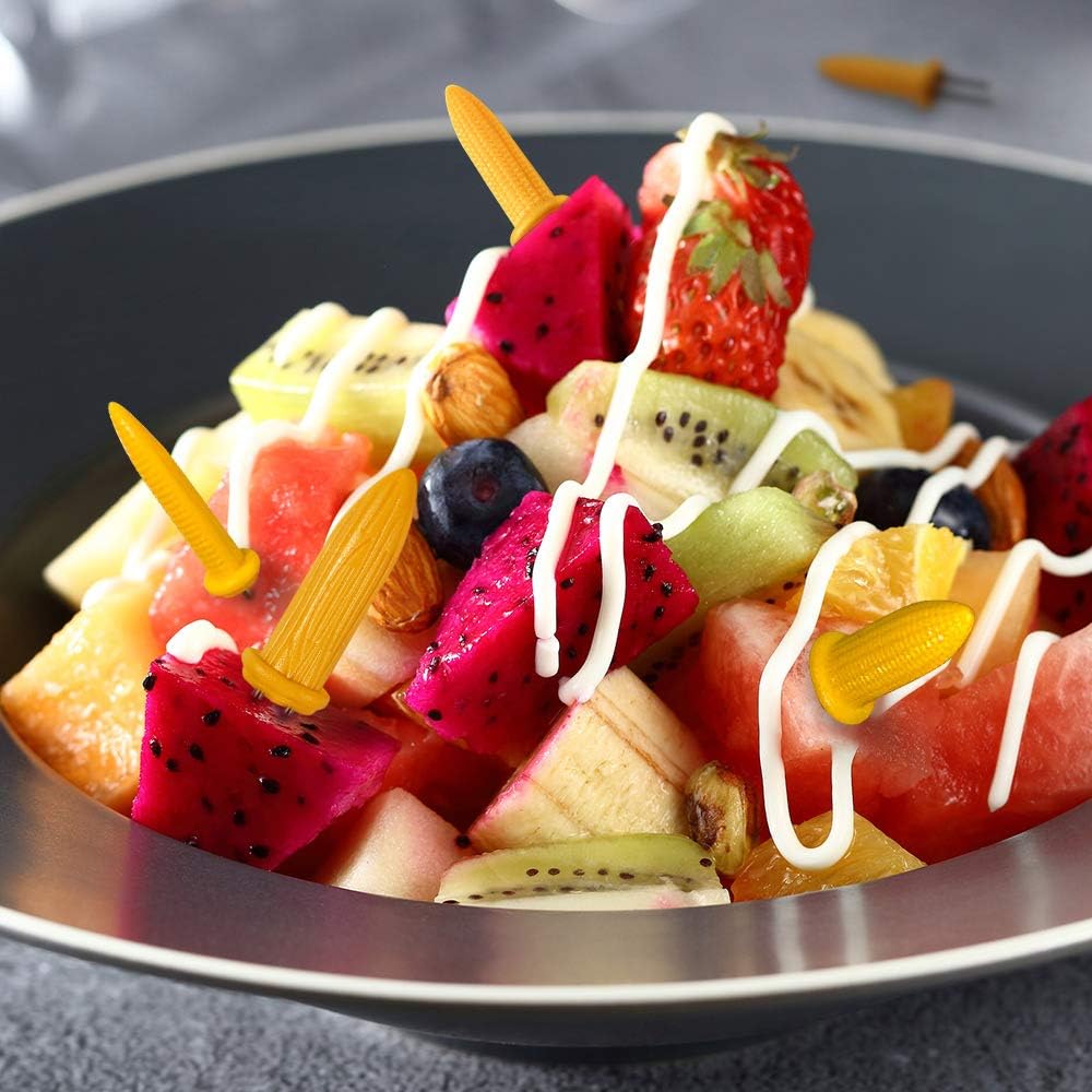- [Easy-Clean & Long-Lasting] - Stainless steel spikes wipe clean in seconds; plastic handles resist stains and odors. Replace disposable wooden sticks sustainably – survives 500+ uses in dishwasher-safe cycles.