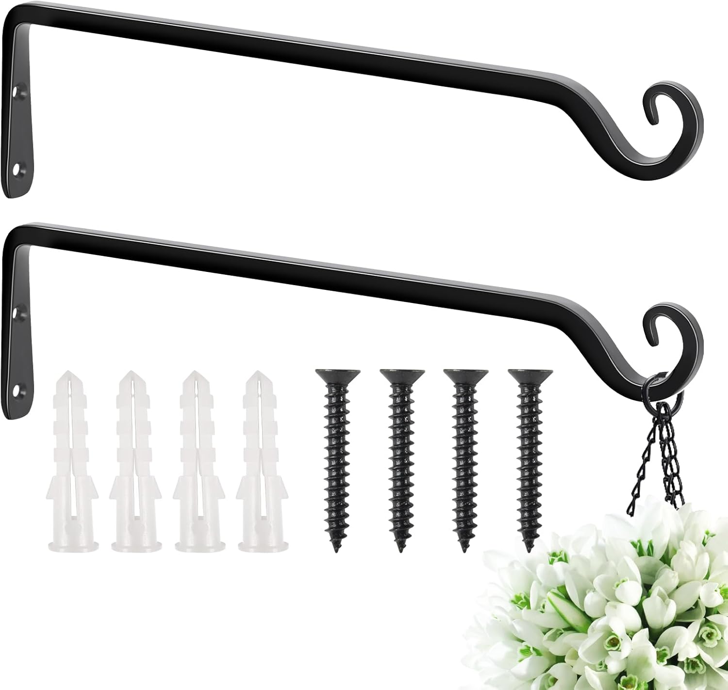 • 【EXCELLENT QUALITY】:The decorative plant hanging bracket is 4 inches in height and 12 inches from the wall, the screw length is 1.6 inches, making it suitable for hanging your favorite indoor and outdoor decorations. These hanging plant hooks are made of high-quality iron and coated with powder,they are rust and corrosion resistant. Premium quality makes them sturdy.