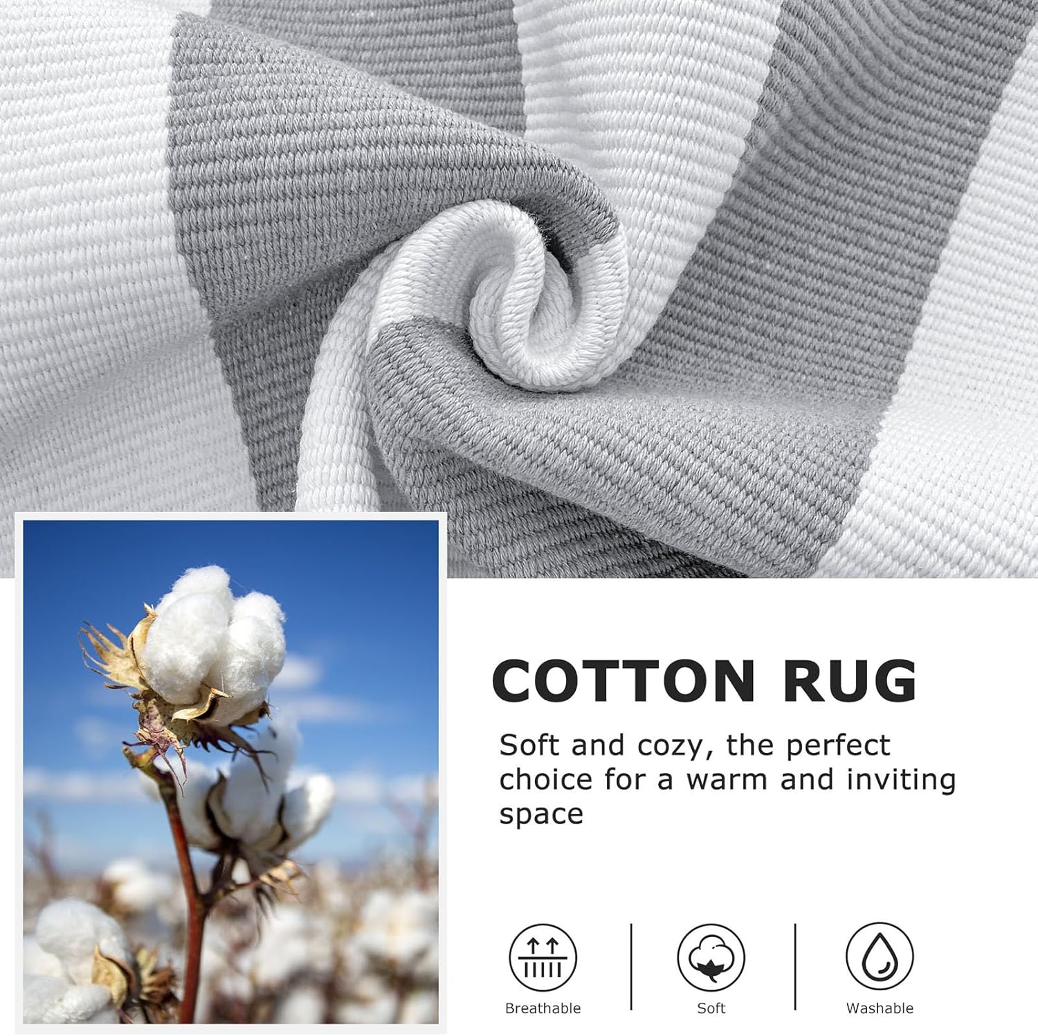 - Easy to Clean: This gray and white striped rug is simple to maintain with machine wash or vacuuming to remove dirt. The rug is sturdy and can be tumble dried on low. Keep your door rug fresh and clean with minimal effort. NOTE: Cotton rugs normally shrink slightly after washing