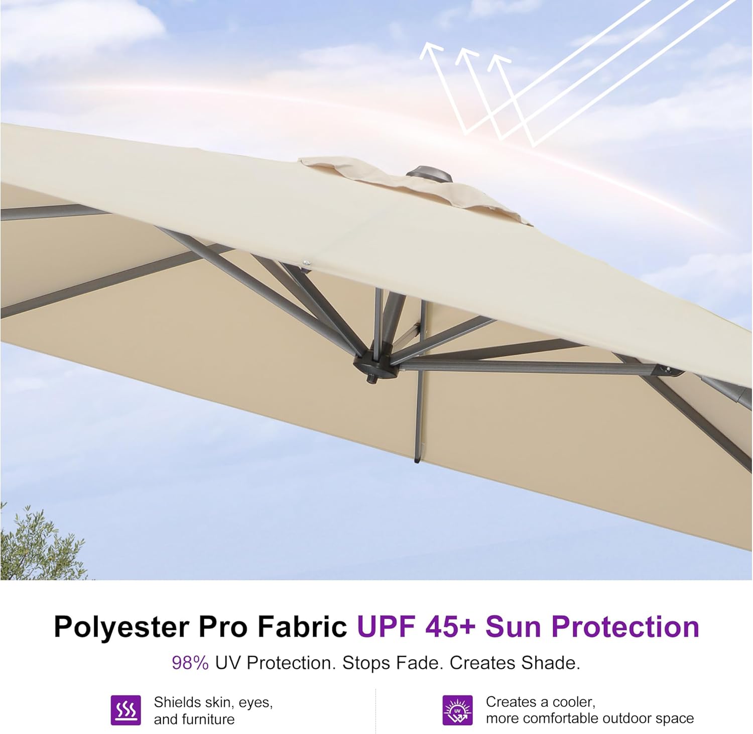 PURPLE LEAF 8 Feet Patio Umbrella Outdoor Cantilever Square Umbrella Aluminum Offset Umbrella with 360-degree Rotation for Garden Deck Pool Patio, Beige