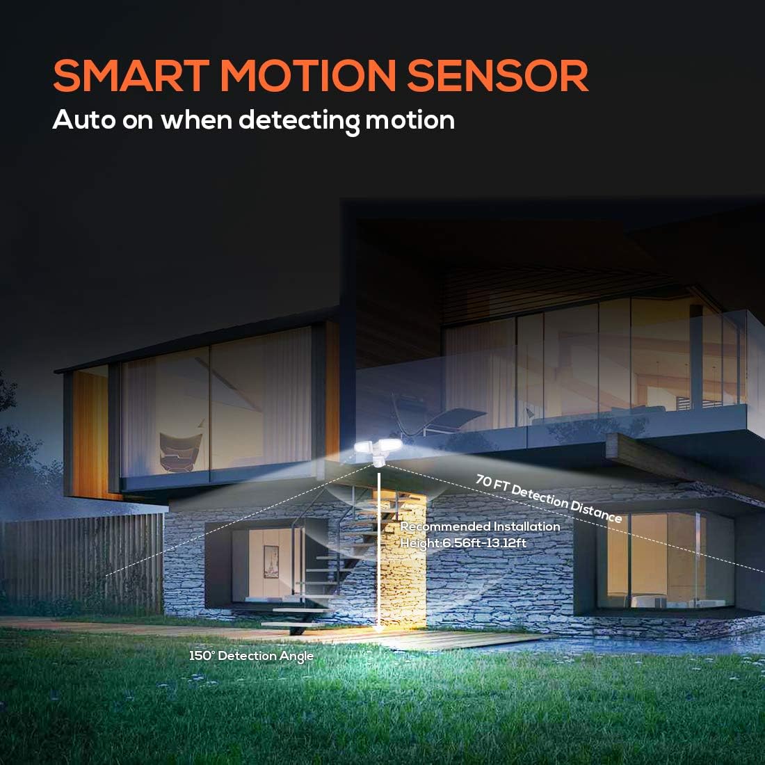 - 【IP65 WATERPROOF & DURABLE】IP65 waterproof rating ensures that your motion-activated flood light won’t give in in rain, sleet, or snow weather. It's specifically designed to withstand extreme weather conditions, all-weather resistant and provides additional safety and security for your home. More durable aluminum design provide the product a good heat dissipation function, the outstanding lifespan of 50,000 hours can effectively reduce the frequency of replacing fixtures.