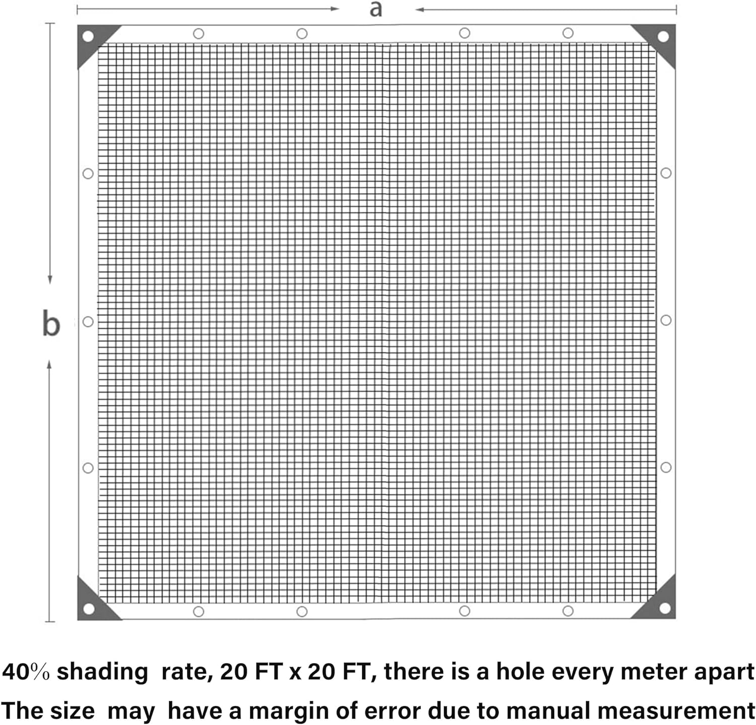 - Easy Set up - There are grommets in each sides every 40 inches. They are located along the entire reinforced edges. You can hang our Sunblock Shade Cloth freely and easily without any worry about tearing up.
