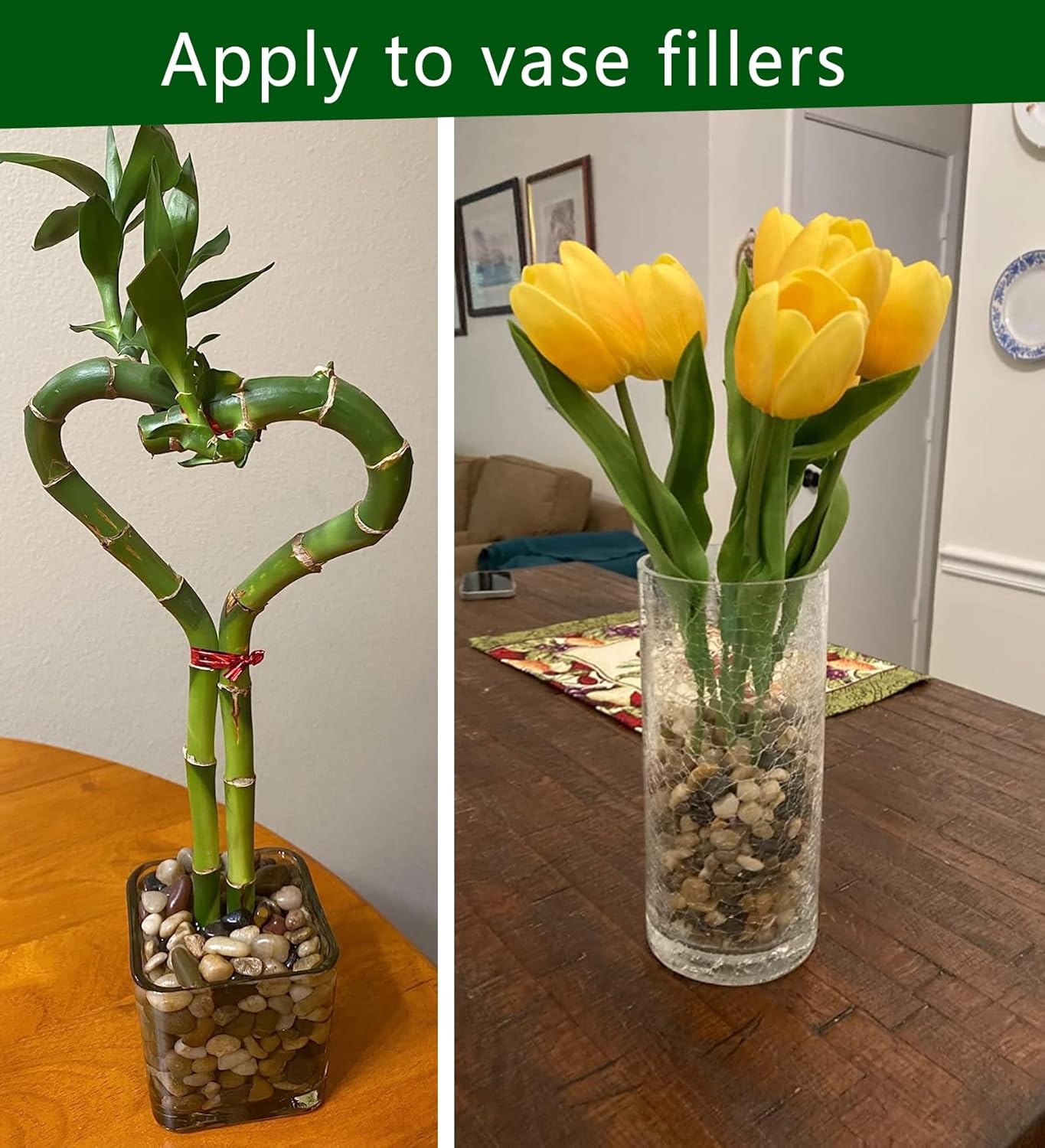 - Use for flower arrangements, vase fillers, walkways, water features, ponds,exposed aggregate flooring or walls, swimming pool areas and many other areas.