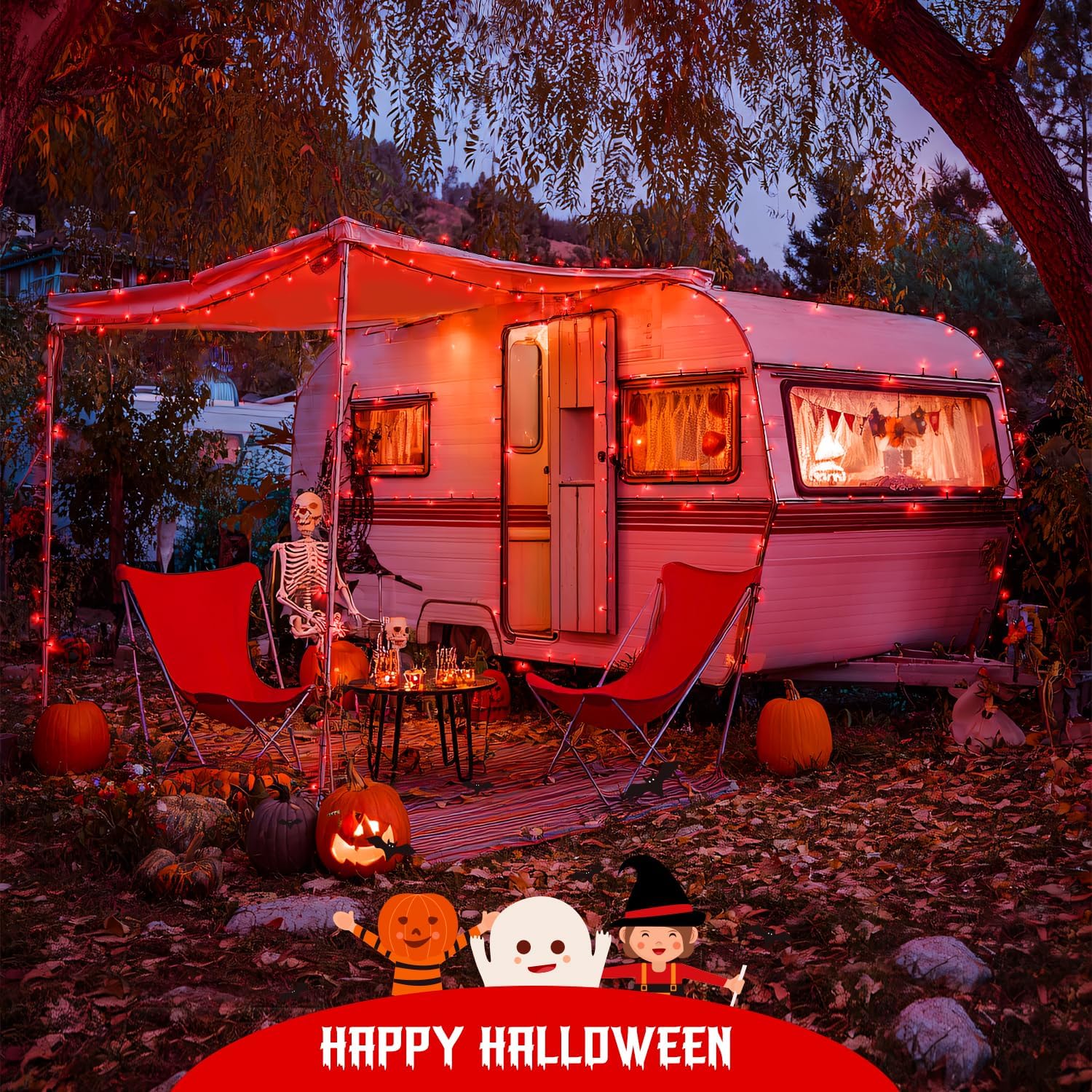 - 2 Pack Red Solar Halloween Lights: The valentine solar lights outdoor not only upgrade the LED beads to make them larger and super bright, but also use more advanced monocrystalline silicon solar panels, which can better receive and store solar energy. When night falls, it is released more efficiently. Total Length of Lights: 2x75.5 ft. Total LED light beads: 2x200 LEDs. Each Lead wire Length: 9.9ft. Space between LED light beads: 3.94 inches. Solar Panel Size: 3.94 inches x 3.74 inches
