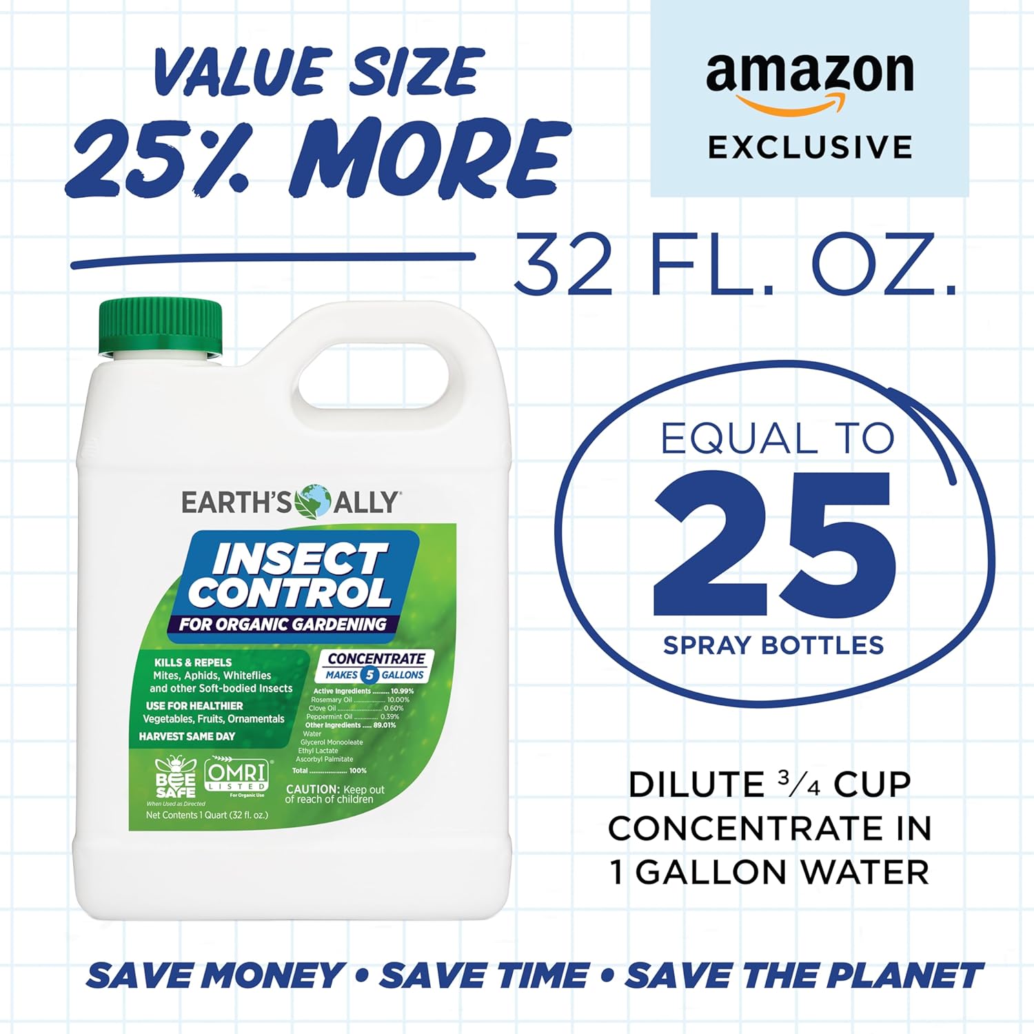 - NO HARMFUL RESIDUE - Earth’s Ally Insect Control is an OMRI Listed insecticide, miticide and repellant for use in organic gardening.