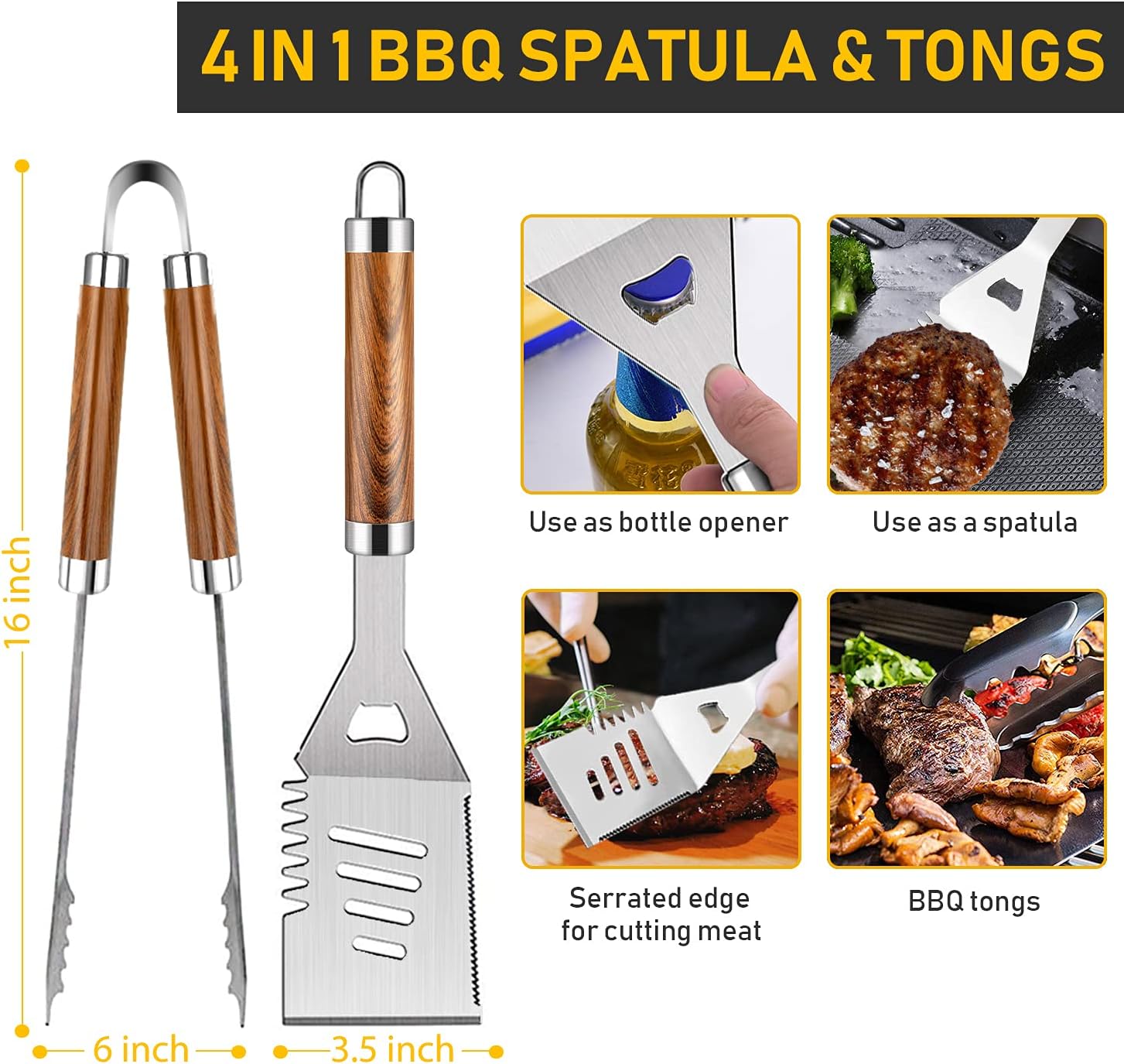 - [Grilling Gifts for Men/Women]: It is a great bbq gift set for any occasion, perfect for fatherโs day, birthdays, Christmas, and valentines day gifts for him. All of our bbq accessories are thoroughly tested before we ship them out to you. If it does not suit you for any reason, please contact us, we will take care of it in 12 hours!