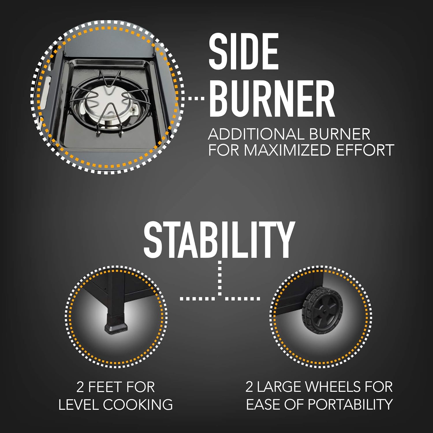 - Side Burner for Added Versatility – The convenient side burner allows you to prepare sauces, soups, and side dishes simultaneously, expanding your cooking options.