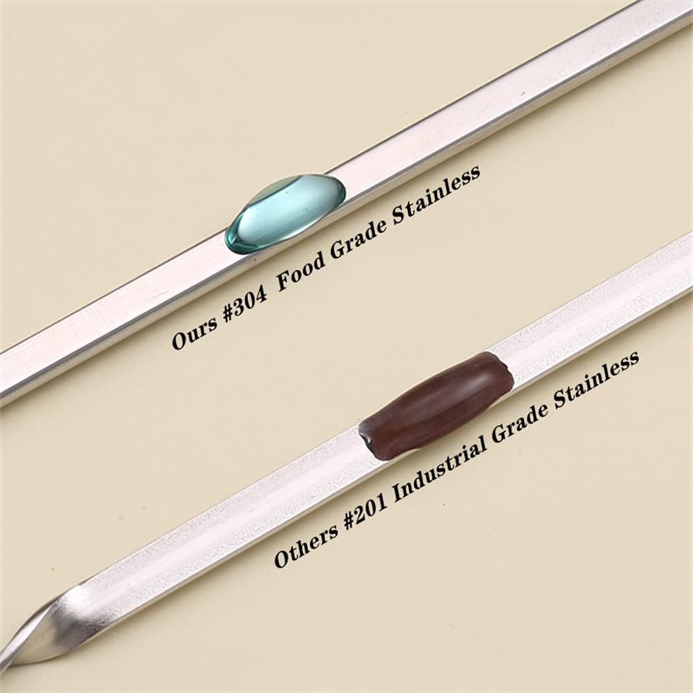 - šćPREMIUM STAINLESS STEEL, PERFECT WORKMANSHIPćMetal kabob skewers sticks are made of premium stainless steel,food grade, rust-proof, heat-resistant, and corrosion-resistant. These heavy duty grill skewers are corrosion resistant and can last long. The edges of the barbecue skewers are well polished, and the metal skewers are safe to use. Metal shish kabab skewer is of solid one-piece design. The Reusable BBQ Sticks are thick enough to allow you to add weight without bending or twisting.