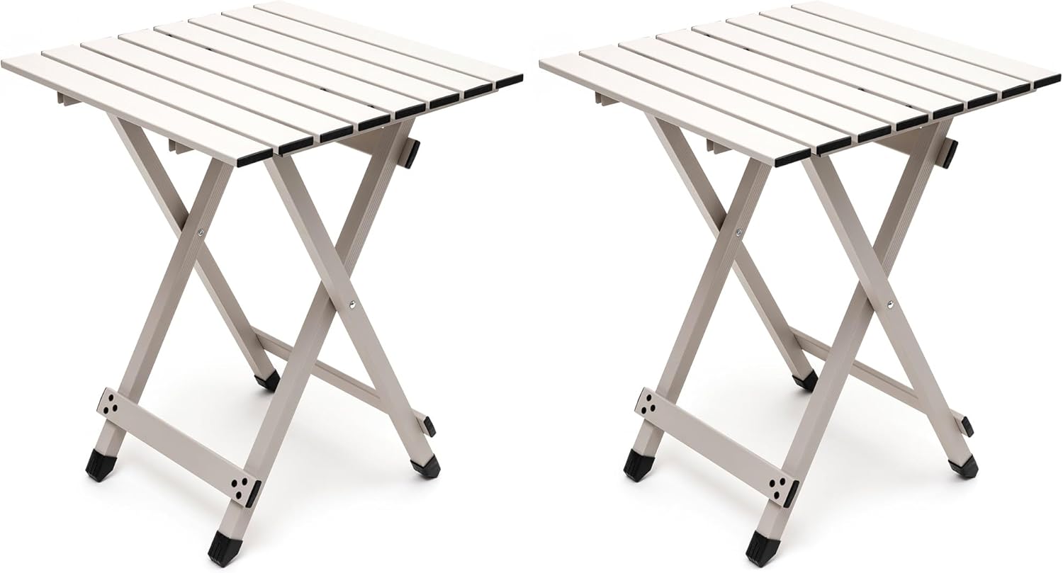- Outdoor Side Table: Lightweight folding side table is ideal for outdoor activities like picnics, tailgating, RVing, fishing, and road trips. folding aluminum camp table is great for 2 people for dining, or can be used as a side table.