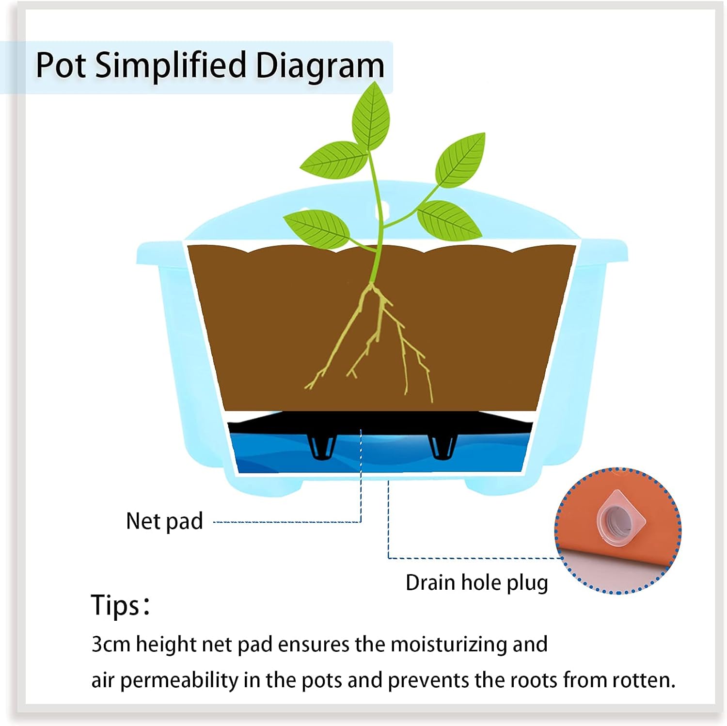 - Drain hole plug: planter has drain hole plug, you can plug it when you use it indoor to prevent water flowing out and storage water for plant daily self-watering. And you also can open it to exhaust excess water.