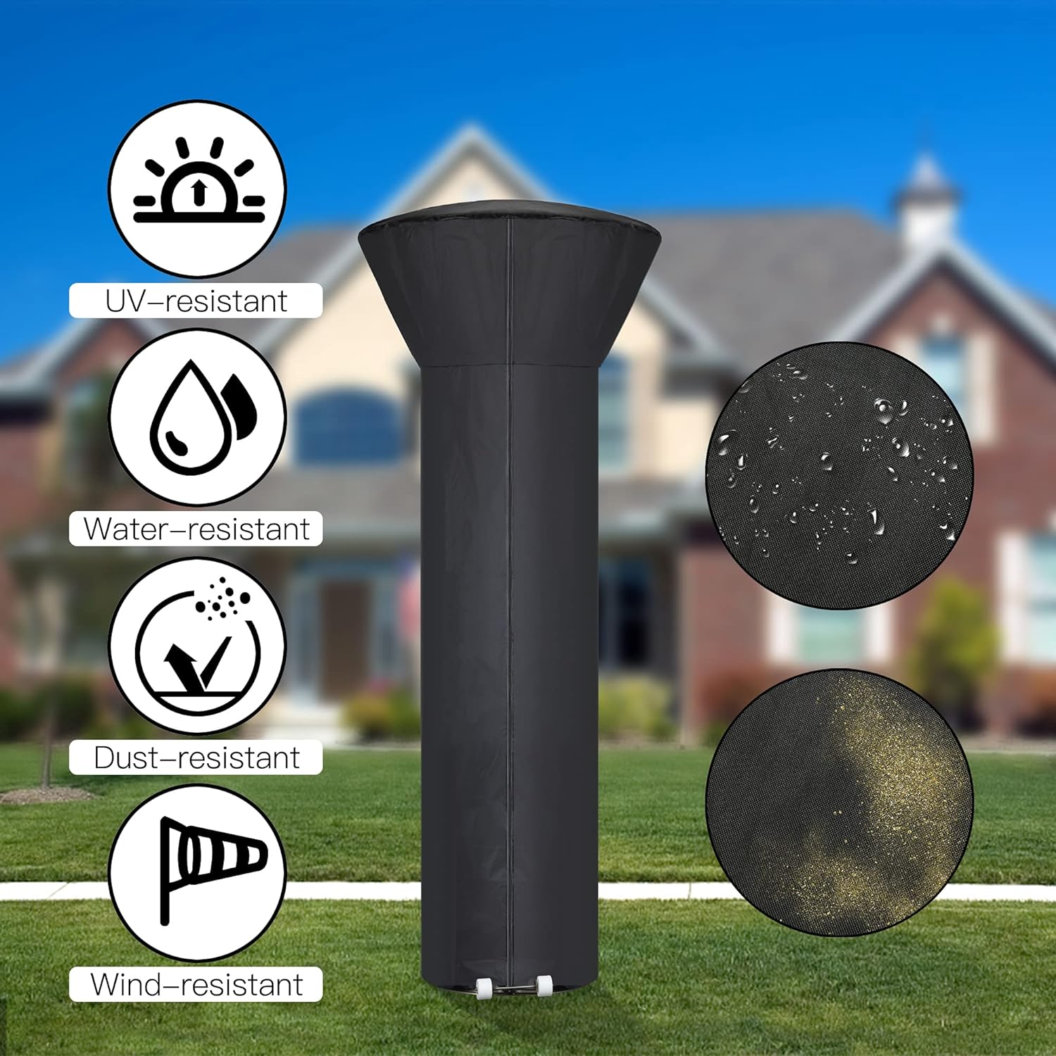 Patio Heater Covers with Zipper and Storage Bag,Waterproof,Dustproof,Wind-Resistant,Sunlight-Resistant,Snow-Resistant,Black,87'' Height x 33" Dome x 19" Base