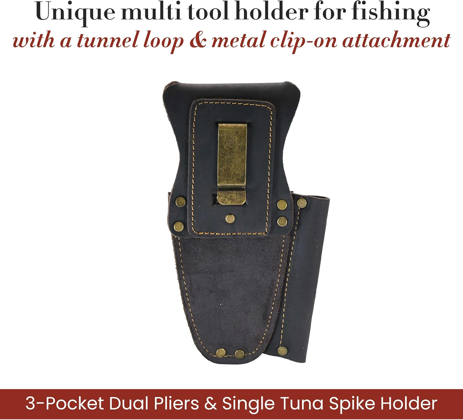 Style N Craft 70012-3 Pocket Dual Pliers & Single Tuna Spike Holder in Oiled Leather - Dark Brown