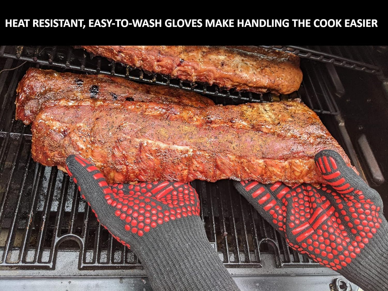 - High heat resistant with non slip silicone grip mitts and oven gloves protect up to 7s at 1472F with aramid stretch fabric and an extra long cuff to protect hands and wrists while handling hot food