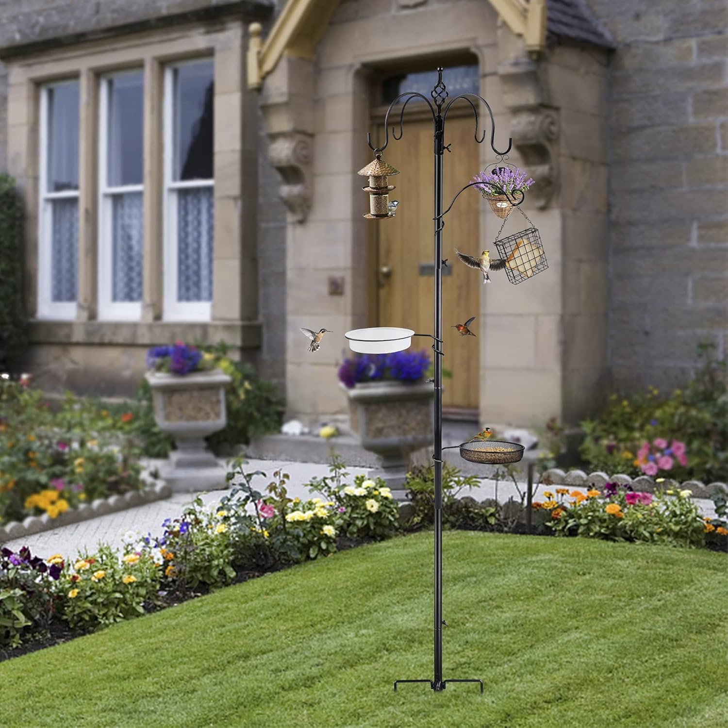 - High Quality: Our bird station is coated with black anti-rust coating, sturdy bird multi-feeder stand is an area of your yard where you have bird feeders set up to attract wild birds. Forked base for added stability and ease of placement.