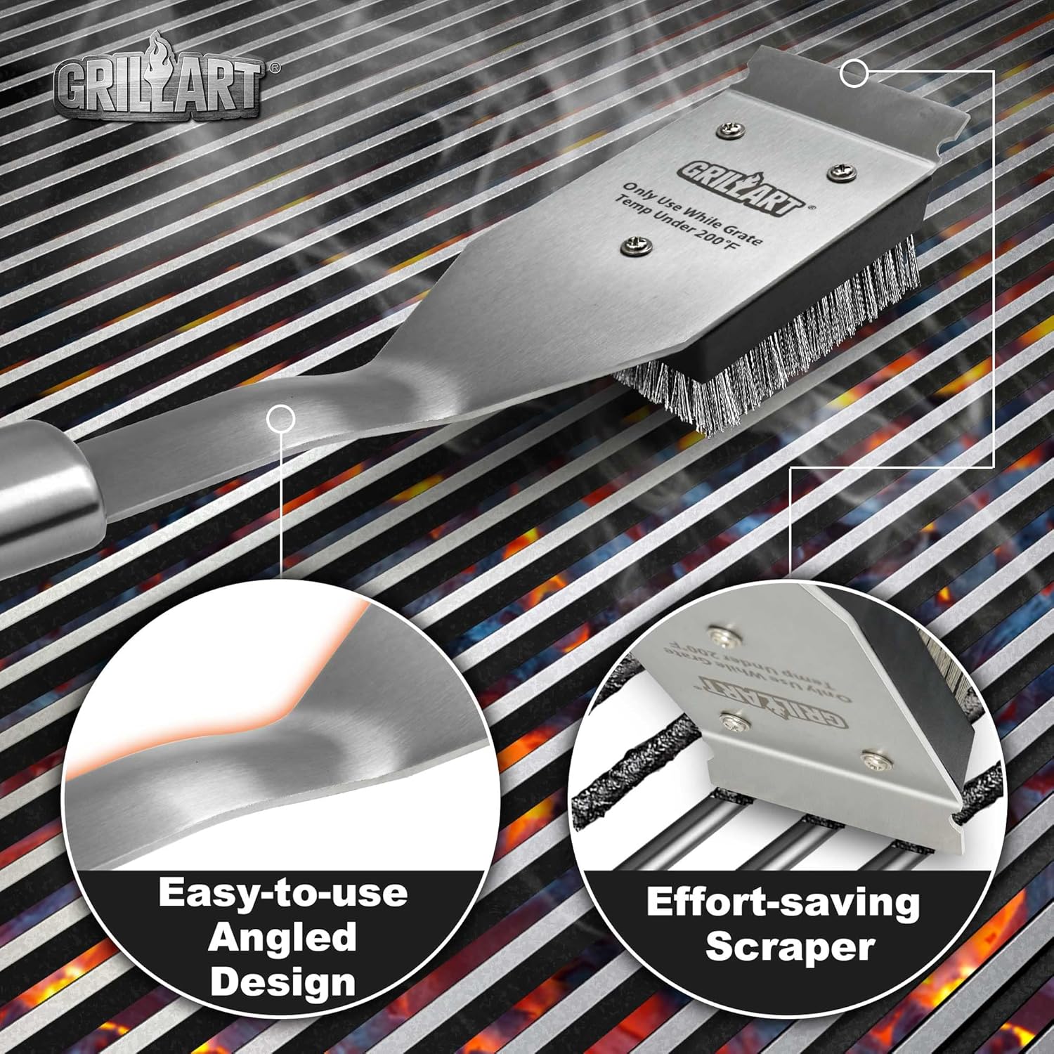 - Effortless cleaning - Packed full of stiffer and denser stainless-steel bristles along with a tough grill scraper, you hardly have to use any muscle to keep your grill tidy; Take this home, and be ready to shred off even the toughest grilled on remnants with just a few strokes!