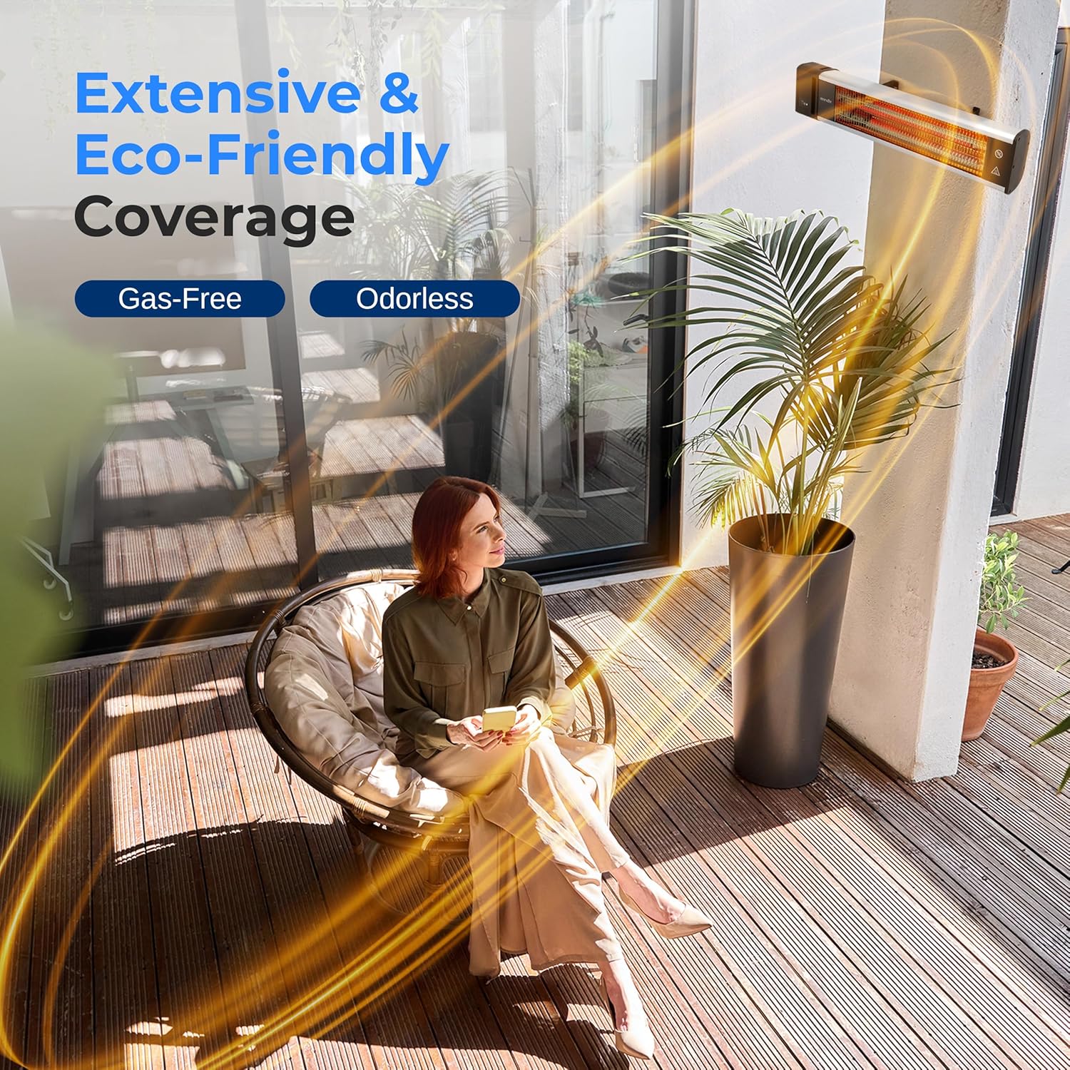 - ENERGY EFFICIENCY - Our ETL-certified 1500-watt infrared outdoor space heater features high-efficiency carbon fiber heating elements. With an 88% efficiency rating, this heater helps reduce your energy costs.
