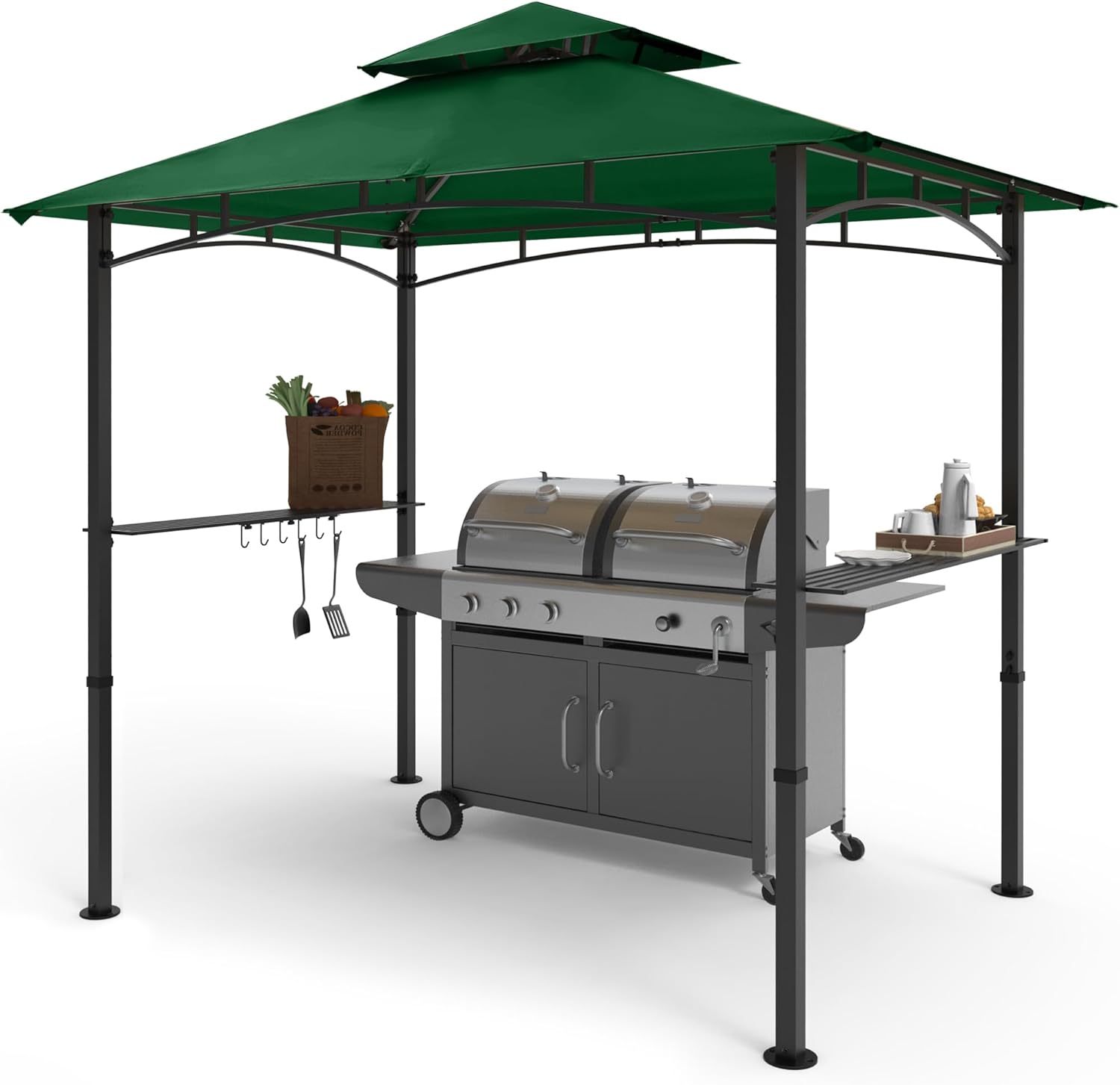 COOSHADE 8'x 5' Grill Gazebo Double Tiered Outdoor BBQ Gazebo Canopy with LED Light (Forest Green)