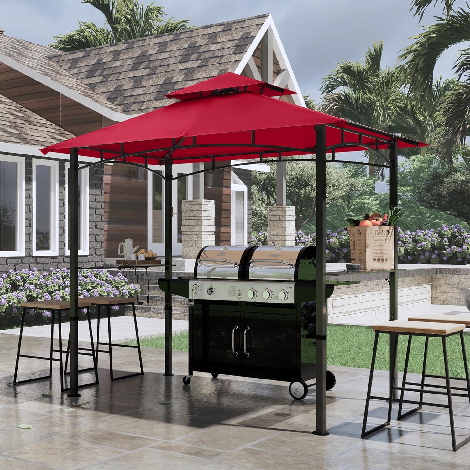 - 【Ideal for Outdoor Grilling】: This grill gazebo creates a perfect spot and patio shade for you to enjoy BBQ party and cooking with 8' x 5' large footprint in the backyard.