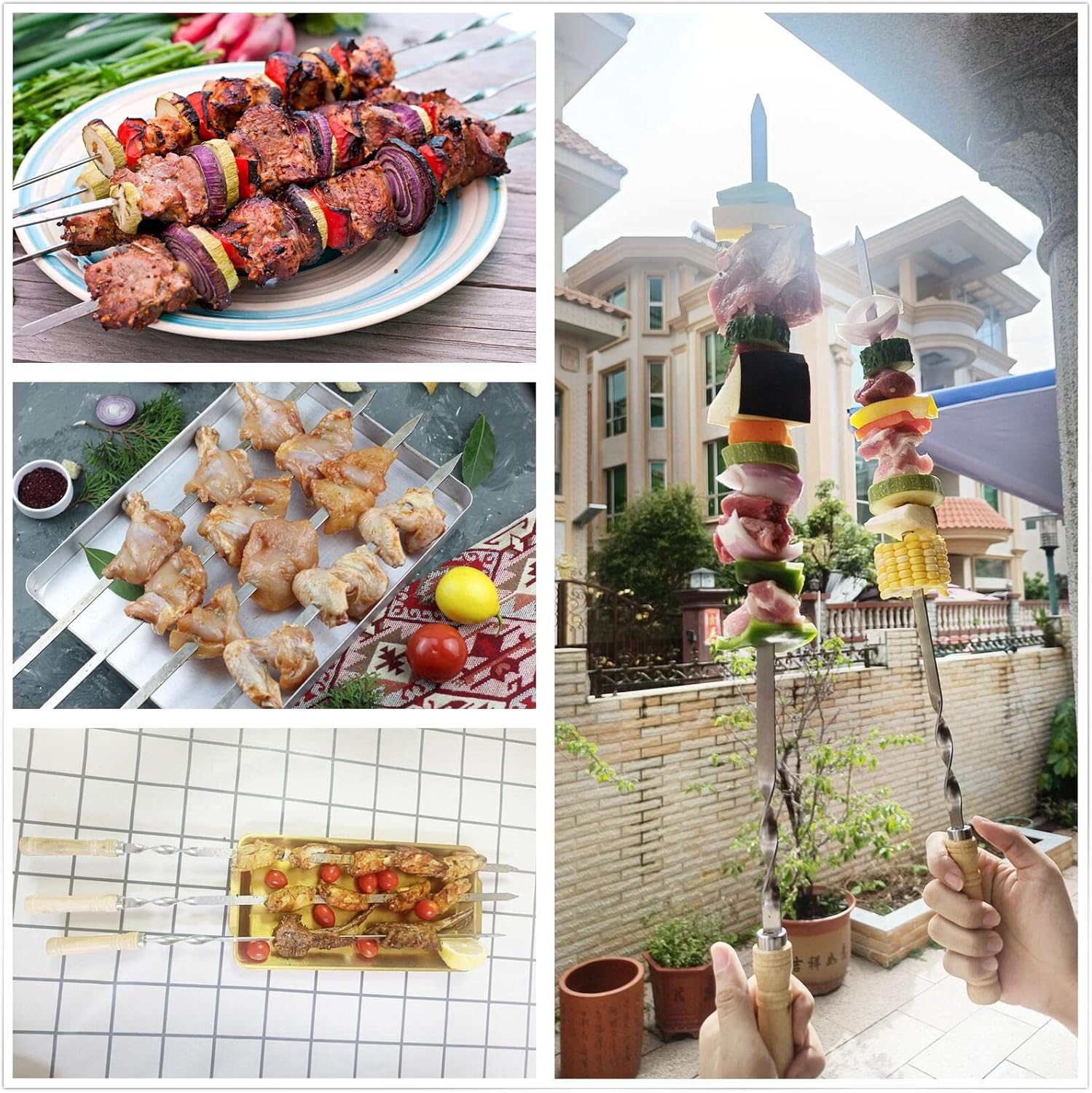 - PERFECT ENJOYMENT:Barbecue skewers stainless steel are great for backyard BBQ party, pool side grilling, take it to parks, camping, road trips and more. BBQ on the go!cooking even more. BBQ skewers suitable for kebabs,shish kebob, shrimp, chicken, fruits,vegetables, meat,corn cob skewers,fish,beef etc.This is the best choice for you to enjoy a perfect barbecue in the backyard/picnic with your family and friends.Enjoy a free life