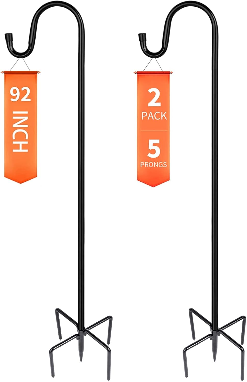 - 【Upgraded in Stability & 5 Base Prongs】Compared to other similar hooks in the market, our heavy duty shepherds hooks have upgraded with 4 extra long and double-forked base prongs to be total 5 prongs which makes it the strongest garden hook in the market and maintain a fixed, upright posture while remaining firmly planted in the ground without easily falling down.