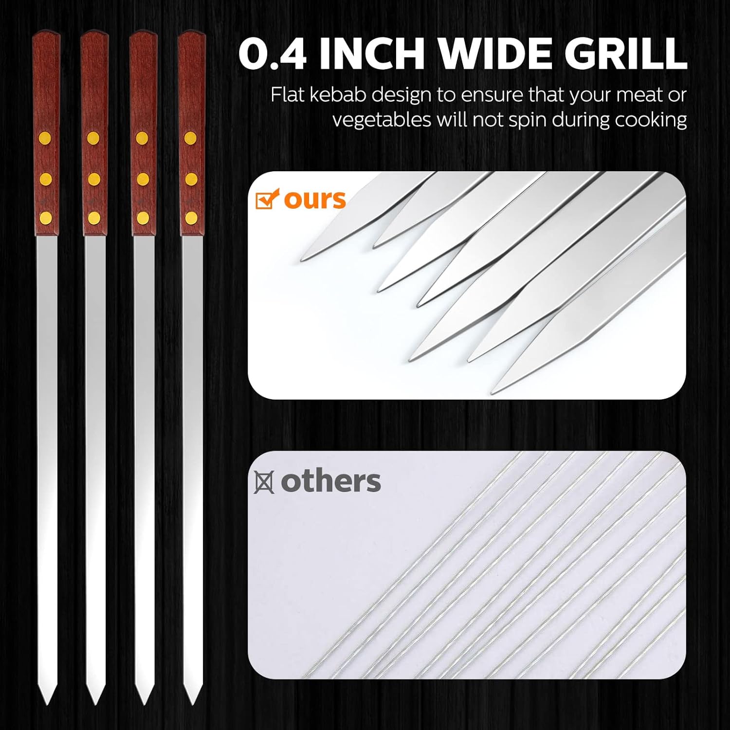 Cunhill 12 Pcs 19.7 Inch Kabob Skewers for Grilling 0.4 Inch Wide Flat Blade Thin Stainless Steel Kabob Sticks Long Barbecue Reusable Metal BBQ Skewers with Wood Handles for Tailgate Party Outdoor
