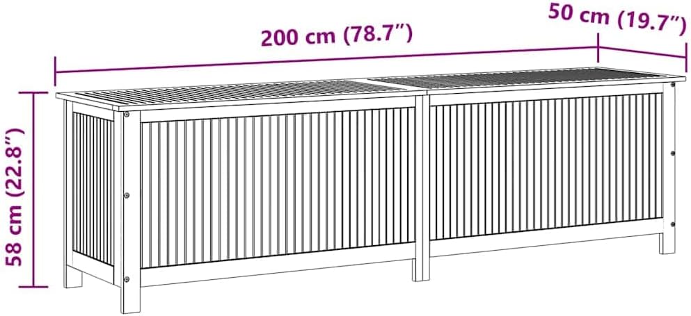 vidaXL Outdoor Storage Box, Deck Box with Gas-Lift Lid, Storage Chest with Water-Resistant Zippered Bag Inside, 78.7''x19.7''x22.8'', Solid Acacia Wood